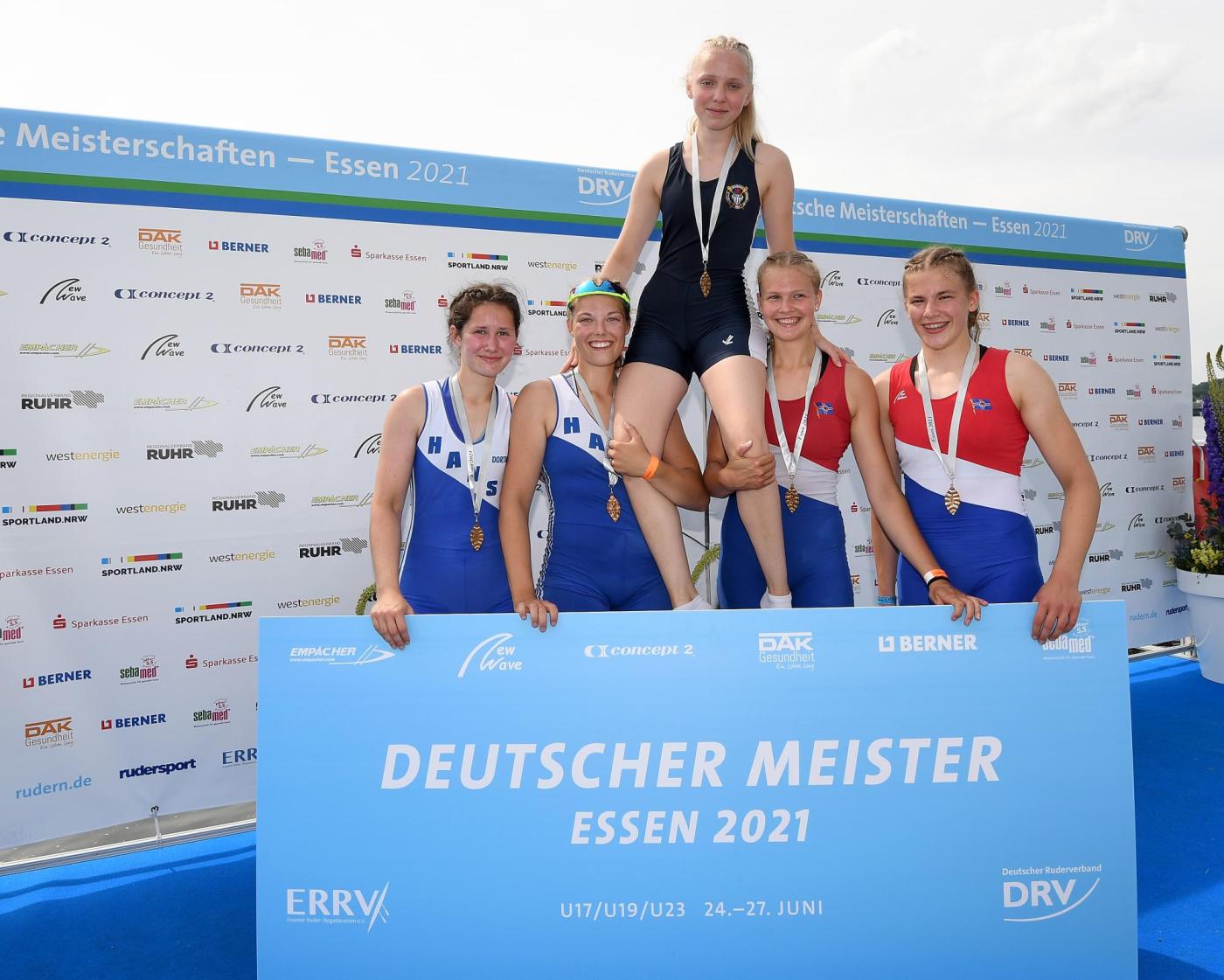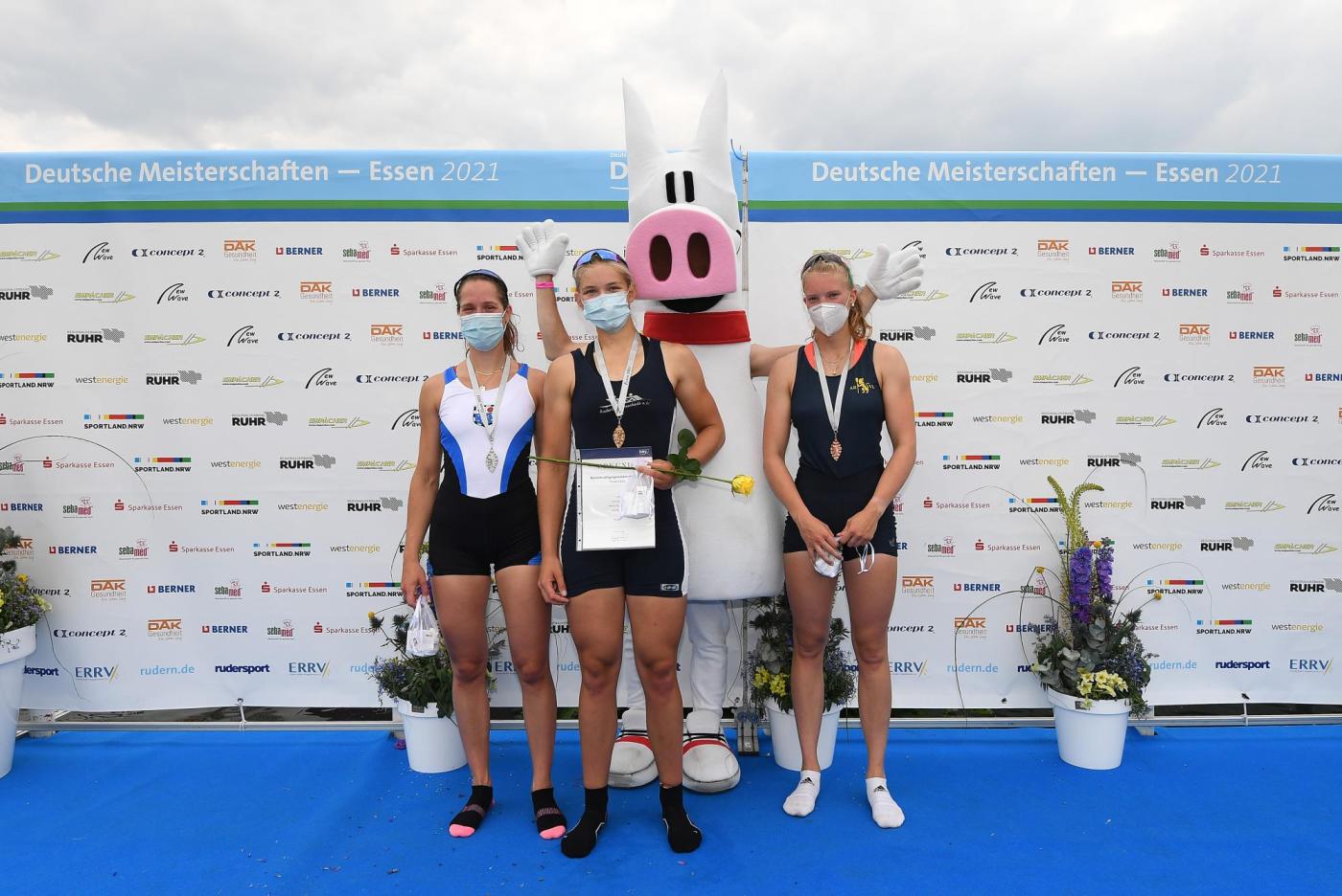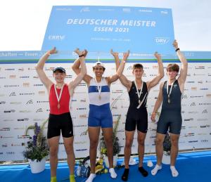 Den Frauen-Einer B gewann Alexandra Föster souverän mit über 15 Sekunden Vorsprung. Für Ruderexperten war das keine Überraschung, denn die Athletin vom Ruderclub Meschede e.V. fuhr bereits viel im A-Bereich mit und verpasste im Mai nur knapp die Nominierung für Tokio. Corona erwischte die 19-Jährige und somit hatte die mehrfache Junioren-Weltmeisterin bei der Nominierungsregatta in Luzern nicht ihre sonst so sensationelle Performance. Im B-Doppelvierer der Frauen holte Föster dann auch noch Silber, knapp hinter dem Nationalboot.