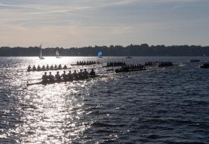 Traditionel veranstaltet der Berliner Ruder Club am 3. Oktober dem „Tag der deutschen Einheit“ die Langstreckenregatta „Rund um Wannsee“. Nachdem uns Corona im vergangenen Jahr zur Absage der Regatta gezwungen hat, gibt es dieses Jahr wieder den Massenstart auf dem Großen Wannsee über 15 km für die Achter und auf dem Griebnitzsee für die kürzere Strecke über 5,5 km für die Vierer.
