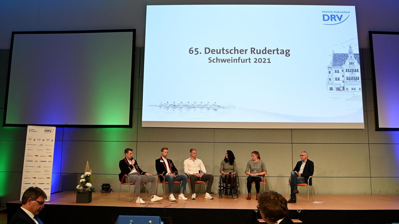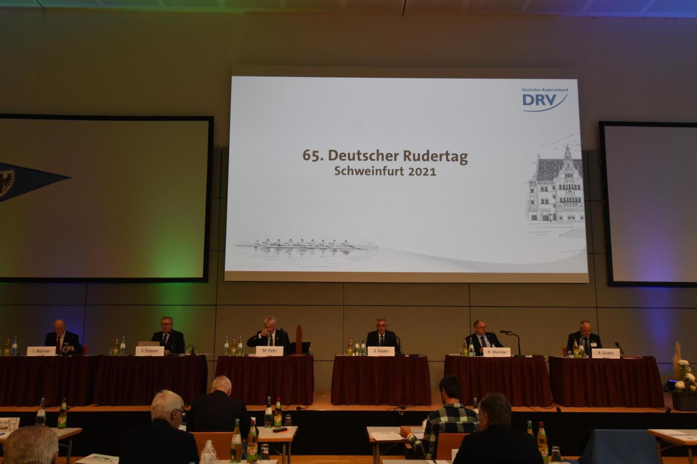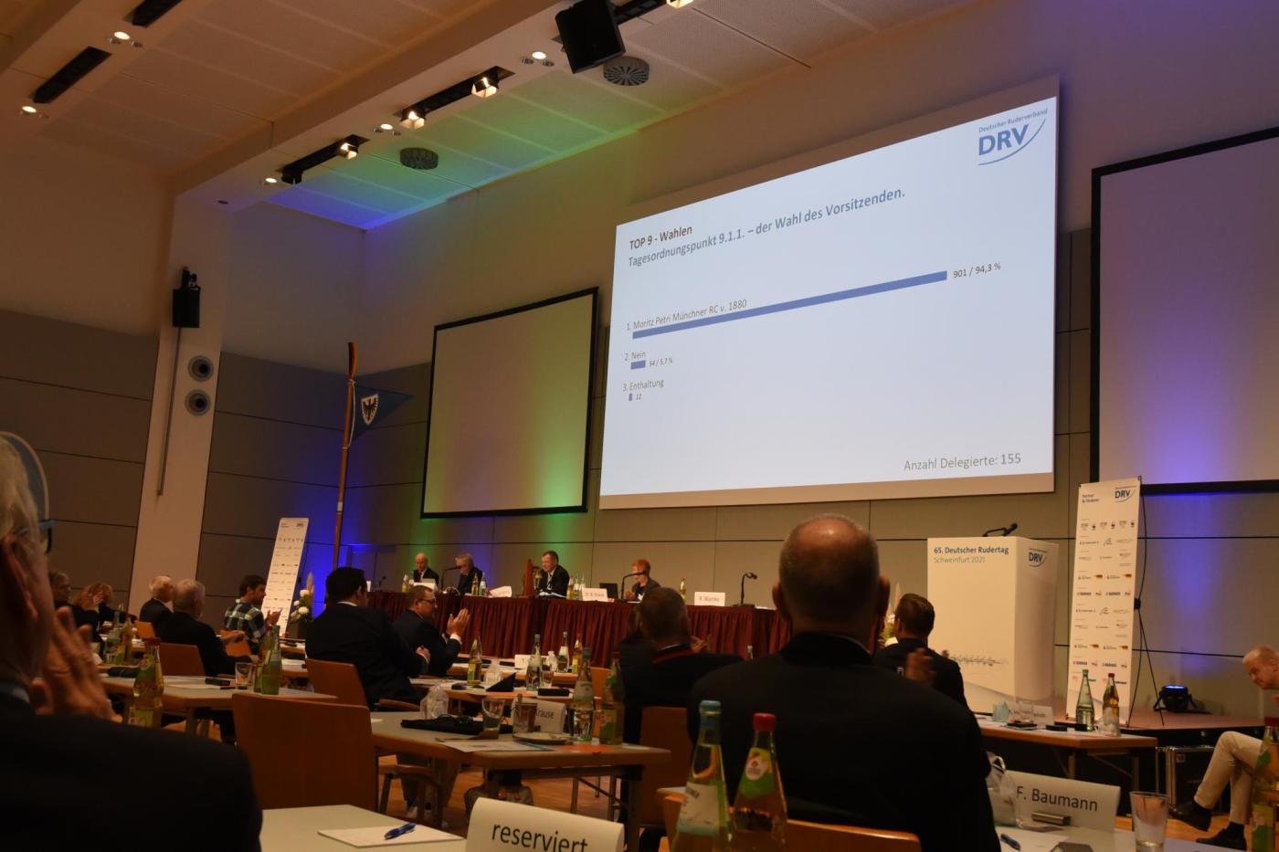 Nach der feierlichen Eröffnung am gestrigen Freitagabend stand heute die Mitgliederversammlung des 65. Deutschen Rudertages in Schweinfurt an. Knapp 200 Delegierte haben konstruktiv über die Zukunft des Deutschen Ruderverbandes diskutiert und abgestimmt. Im Fokus standen dabei die Neuwahlen des Vorstands sowie die Stellung des Sportdirektors. Fortan wird Moritz Petri als Vorsitzender das DRV-Verbandsboot steuern – mit Katharina von Kodolitsch und Torsten Gorski als seine Stellvertreter. Siegfried Kaidel wurde ebenso wie Prof. Dr. Wolfgang Maennig zum Ehrenvorsitzenden ernannt.