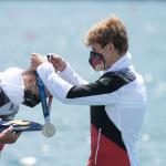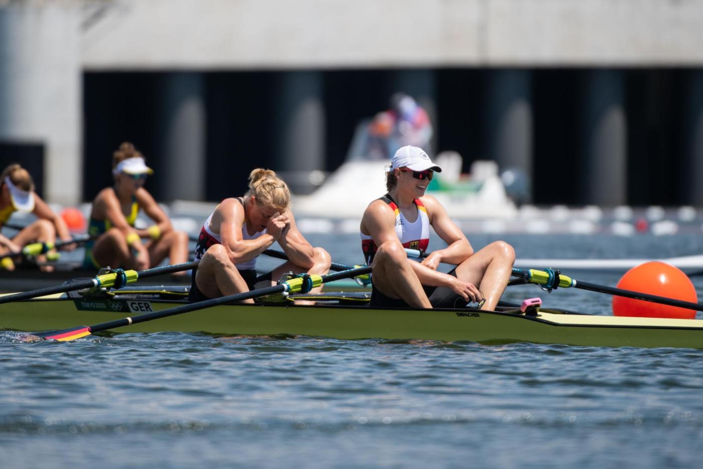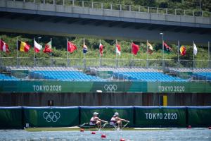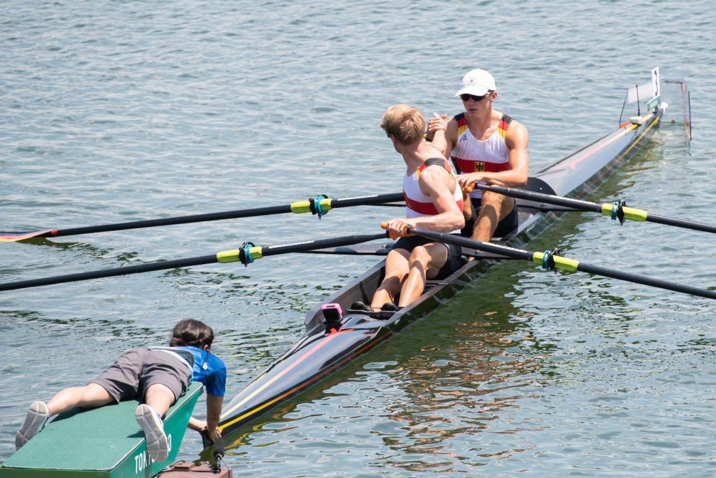Nach nur 24 Stunden Regeneration stand für Leonie Menzel und Annekatrin Thiele (RC Germania Düsseldorf 1904 e.V./SC DHfK Leipzig e.V.) heute das Halbfinale im Doppelzweier an. Das Duo ging in dem deutlich schwierigeren Halbfinallauf mit gleich drei WM-Finalisten (Niederlande, Frankreich, Kanada) auf der Außenbahn ins Rennen. Mindestens Dritte mussten sie werden, um dem Traum vom olympischen Finale zu verwirklichen. Nach einem schnellen Start fand das Duo zunächst gut ins Rennen, ging dann allerdings mit einem Rückstand von knapp 1,5 Sekunden auf den so wichtigen dritten Rang auf die zweiten 500 m. Auf der zweiten Teilstrecke wuchs der Rückstand um eine weitere Sekunde an. An der Spitze machten die Boote aus Kanada und den Niederlanden das Tempo. Mit knapp 2,5 Sekunden Rückstand auf die drittplatzierten Franzosen ging das deutsche Boot auf die zweiten 1.000 m. Doch statt Meter gut zu machen, mussten die Athletinnen von Thomas Affeldt weiter abreißen lassen. Beim Sieg der WM-Dritten aus den Niederlanden kamen die Deutschen mit mehr als zehn Sekunden Rückstand als Letzte ins Ziel. Damit haben sie das A-Finale verpasst. „Es ist schade, dass es nicht geklappt hat, wie man es sich vorgenommen hat. Wir fahren ja nicht hierher und sagen, wir wollen nur das B-Finale erreichen. Das wäre ja gelogen. Wir haben im Training noch einmal einen großen Schritt gemacht, das konnten wir heute leider nicht rüberbringen“, erklärt Annekatrin Thiele, die bei ihren vierten Spielen nun im B-Finale antritt. Woran es genau gelegen hat, können sich die zwei noch nicht erklären. „Aber in so einem Feld kannst du dir halt keine Ausrutscher erlauben“, so Thiele. „Wir haben hier auf jeden Fall einige Erfahrungen gesammelt. Für mich war alles neu. Ich bin gar nicht so enttäuscht, dass wir nicht im A-Finale sind, sondern einfach, dass wir heute nicht unsere Leistung gebracht haben. Aber auch daraus werden wir lernen“, ergänzt Leonie Menzel. (B-Finale, 28. Juli, 08:10 Uhr, 01:10 Uhr dt. Zeit).