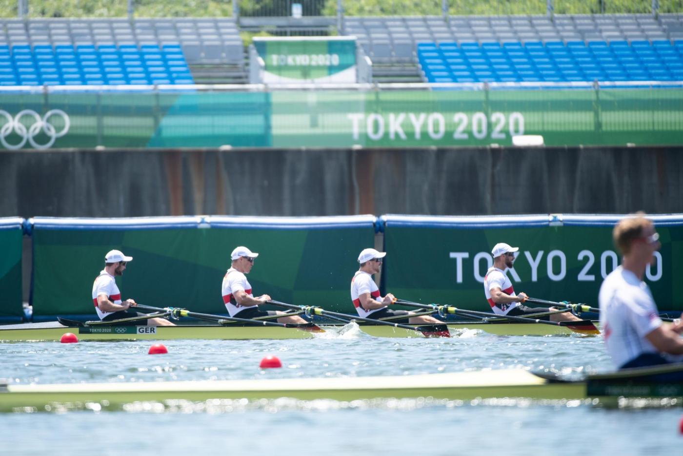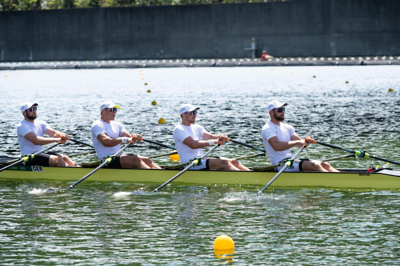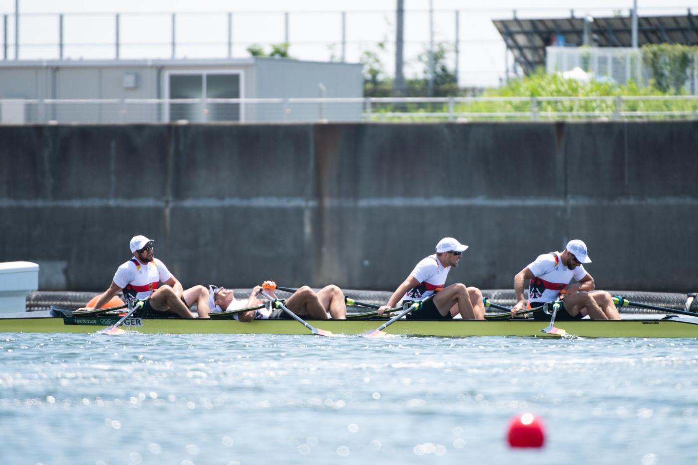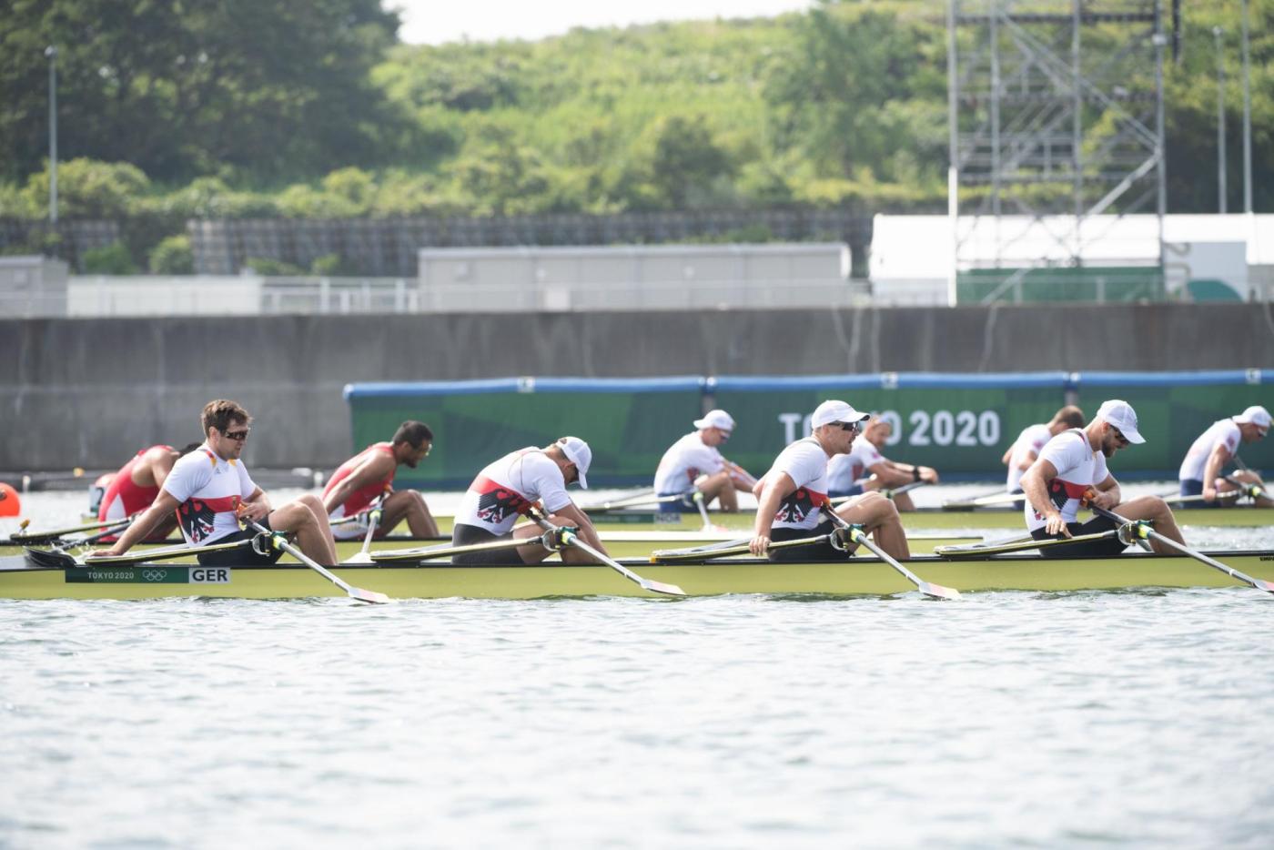 Der Traum von der Titelverteidigung ist für den deutschen Männer-Doppelvierer schon vor dem Finale ausgeträumt. Mindestens Zweiter hätten Tim Ole Naske, Karl Schulze, Hans Gruhne und Max Appel (Ruder-Gesellschaft HANSA e.V./Berliner RC/RC Potsdam/ SC Magdeburg e.V.) im heutigen Hoffnungslauf werden müssen, um das erhoffte Finalticket zu lösen. Die Vorgabe, das Rennen aggressiv anzugehen, gelang den Deutschen auf den ersten 500 m zunächst. Doch wie sich in den vergangenen Rennen schon oft gezeigt hat, fehlte dem deutschen Boot auch heute über die Mitte der Speed. Mit knapp 3,5 Sekunden Rückstand auf die führenden Briten gingen die Athleten von Marcus Schwarzrock auf die zweite Streckenhälfte. Es gelang ihnen nicht, die Lücke nach vorne zu schließen – im Gegenteil, sie mussten weiter abreißen lassen. Auch den Kampf um Rang vier verloren die Deutschen am Ende knapp gegen Norwegen. „So kurz nach dem Rennen ist die Enttäuschung natürlich riesig. Ich denke, alle vier von uns haben das Maximale reingehalten, alles in die Waagschale geworfen. Aber wir haben es nicht zusammen in einen schnellen Vortrieb umwandeln können. Das Problem hatten wir jetzt schon die ganze Zeit. Wir hatten auch Phasen, in denen wir gezeigt haben, dass wir schnell sein können. Darauf hatten wir versucht aufzubauen. Aber wenn vier Leute maximal ziehen, dies aber nicht zusammen machen, dann reicht es eben nicht aus, um bei den Top-Leuten hier vorne mitzufahren“, so ein enttäuschter Karl Schulze, der in Tokio seine dritte olympische Goldmedaille holen wollte. „Wir sind mega enttäuscht. Verlieren ist das eine, aber so hinterherzufahren und nicht mal die Chance gehabt zu haben, ins Rennen ums A-Finale einzugreifen, das tut schon weh“, ergänzt Hans Gruhne. (B-Finale, 28. Juli, 08:50 Uhr, 01:50 Uhr dt. Zeit)