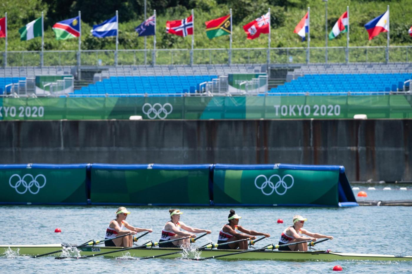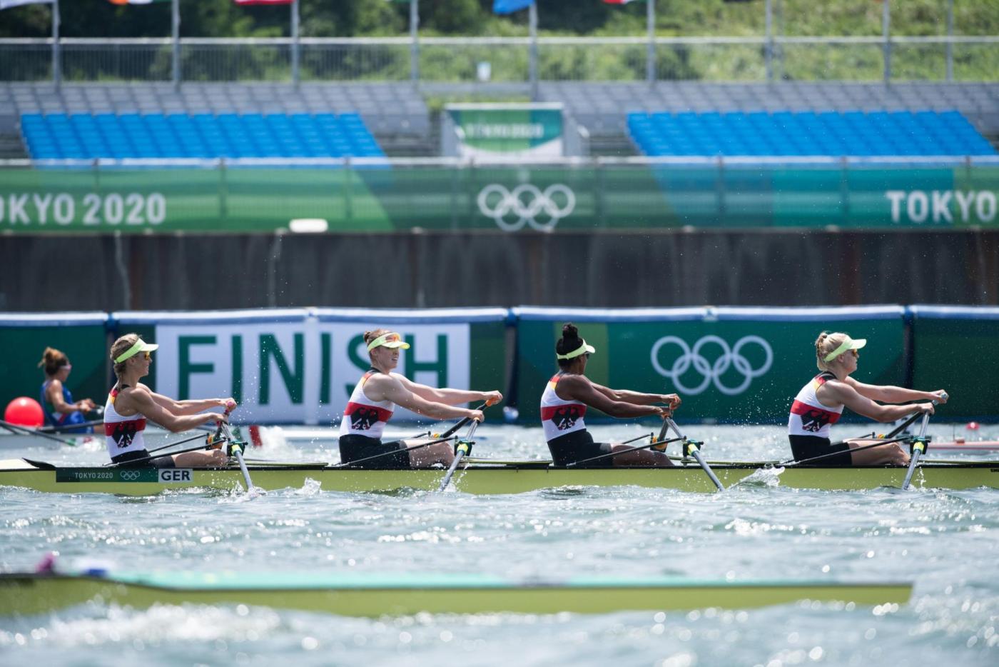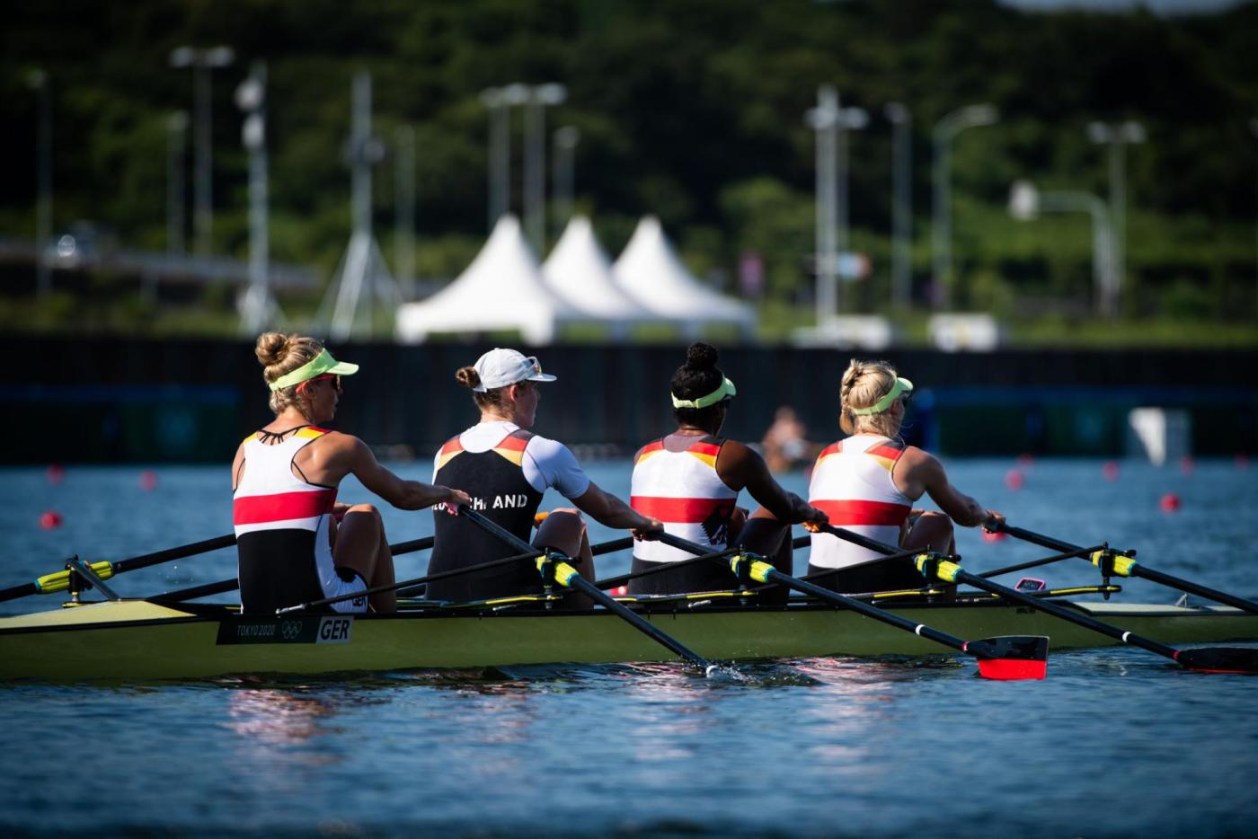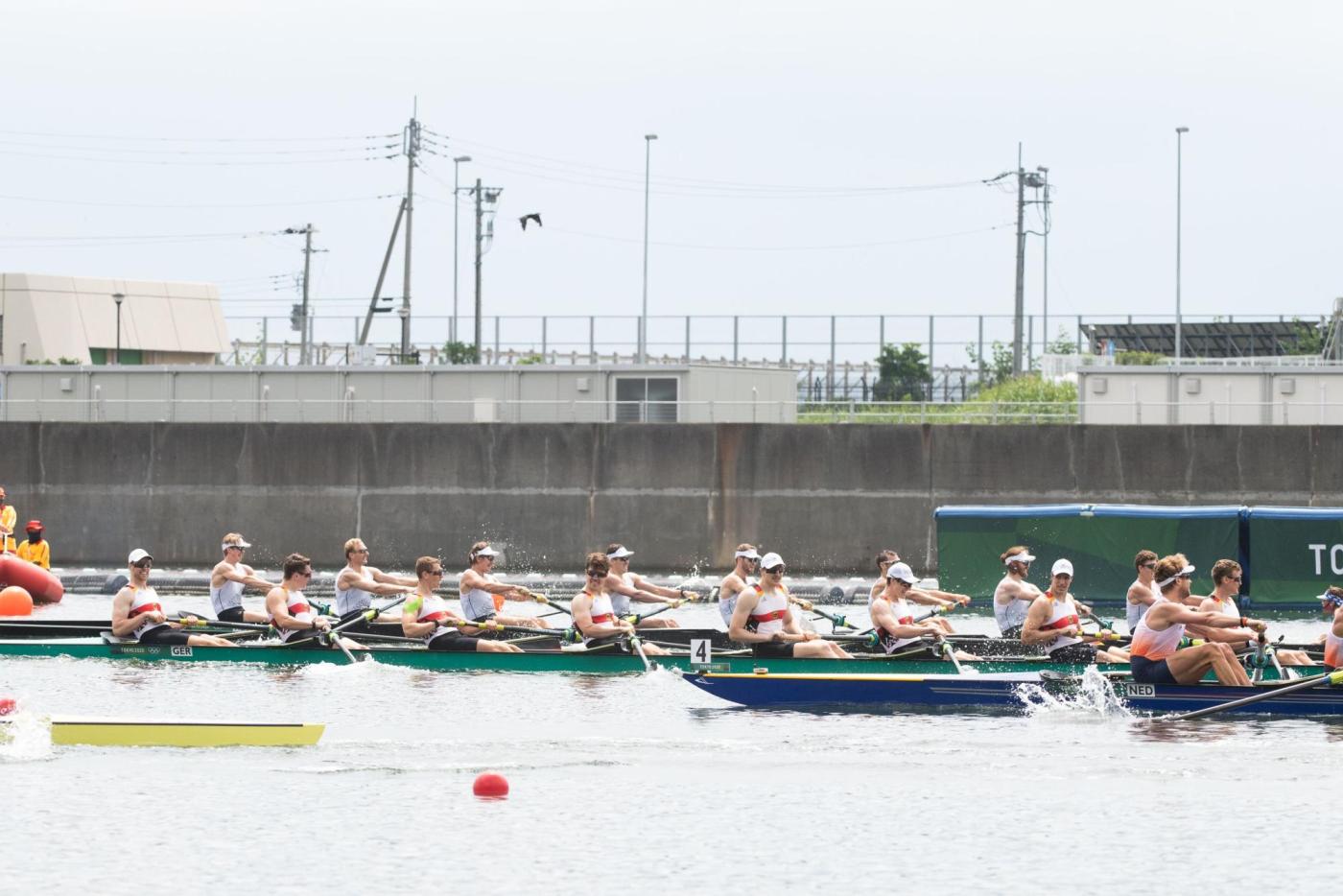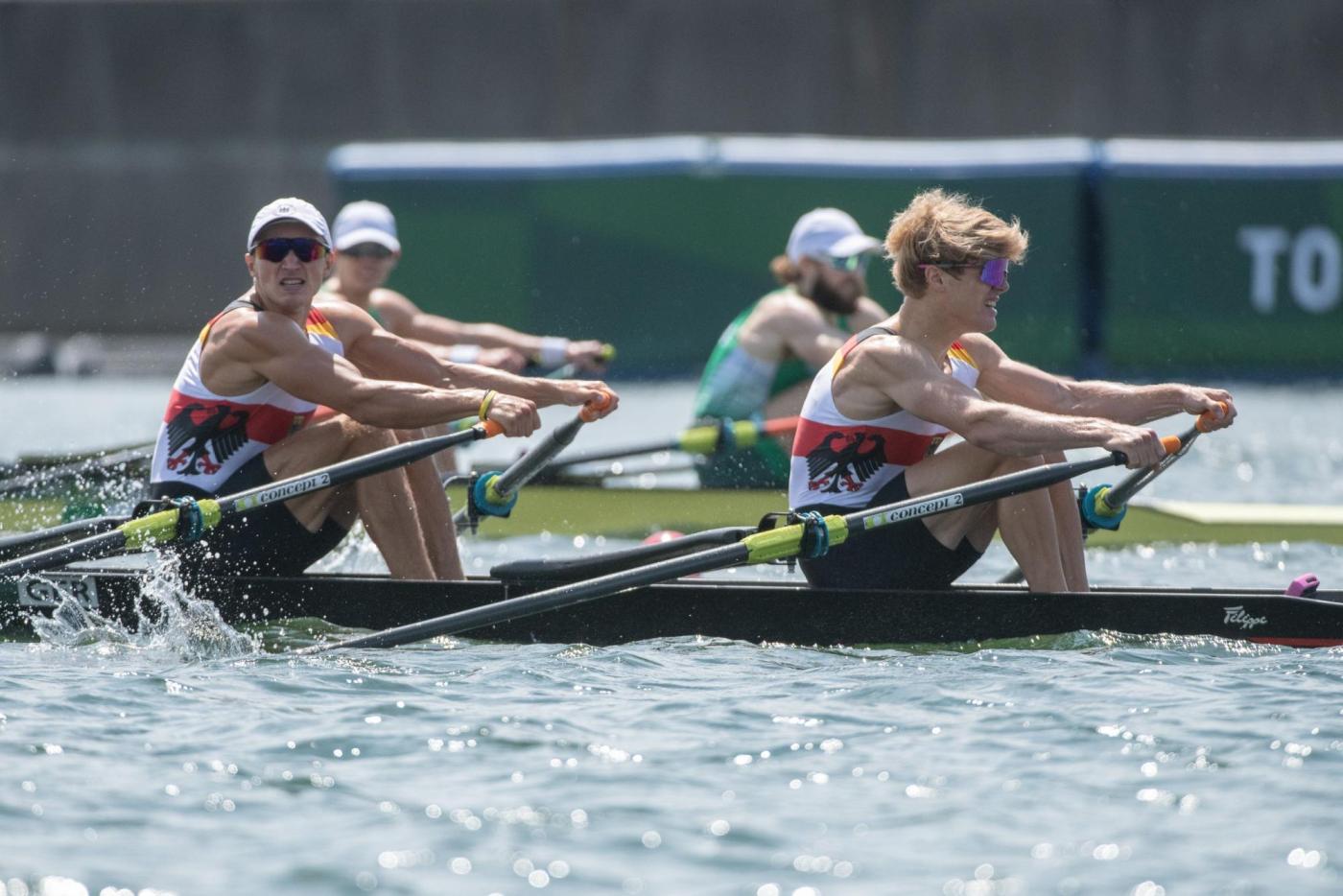 Der Traum von der Titelverteidigung ist für den deutschen Männer-Doppelvierer schon vor dem Finale ausgeträumt. Mindestens Zweiter hätten Tim Ole Naske, Karl Schulze, Hans Gruhne und Max Appel (Ruder-Gesellschaft HANSA e.V./Berliner RC/RC Potsdam/ SC Magdeburg e.V.) im heutigen Hoffnungslauf werden müssen, um das erhoffte Finalticket zu lösen. Die Vorgabe, das Rennen aggressiv anzugehen, gelang den Deutschen auf den ersten 500 m zunächst. Doch wie sich in den vergangenen Rennen schon oft gezeigt hat, fehlte dem deutschen Boot auch heute über die Mitte der Speed. Mit knapp 3,5 Sekunden Rückstand auf die führenden Briten gingen die Athleten von Marcus Schwarzrock auf die zweite Streckenhälfte. Es gelang ihnen nicht, die Lücke nach vorne zu schließen – im Gegenteil, sie mussten weiter abreißen lassen. Auch den Kampf um Rang vier verloren die Deutschen am Ende knapp gegen Norwegen. „So kurz nach dem Rennen ist die Enttäuschung natürlich riesig. Ich denke, alle vier von uns haben das Maximale reingehalten, alles in die Waagschale geworfen. Aber wir haben es nicht zusammen in einen schnellen Vortrieb umwandeln können. Das Problem hatten wir jetzt schon die ganze Zeit. Wir hatten auch Phasen, in denen wir gezeigt haben, dass wir schnell sein können. Darauf hatten wir versucht aufzubauen. Aber wenn vier Leute maximal ziehen, dies aber nicht zusammen machen, dann reicht es eben nicht aus, um bei den Top-Leuten hier vorne mitzufahren“, so ein enttäuschter Karl Schulze, der in Tokio seine dritte olympische Goldmedaille holen wollte. „Wir sind mega enttäuscht. Verlieren ist das eine, aber so hinterherzufahren und nicht mal die Chance gehabt zu haben, ins Rennen ums A-Finale einzugreifen, das tut schon weh“, ergänzt Hans Gruhne. (B-Finale, 28. Juli, 08:50 Uhr, 01:50 Uhr dt. Zeit)