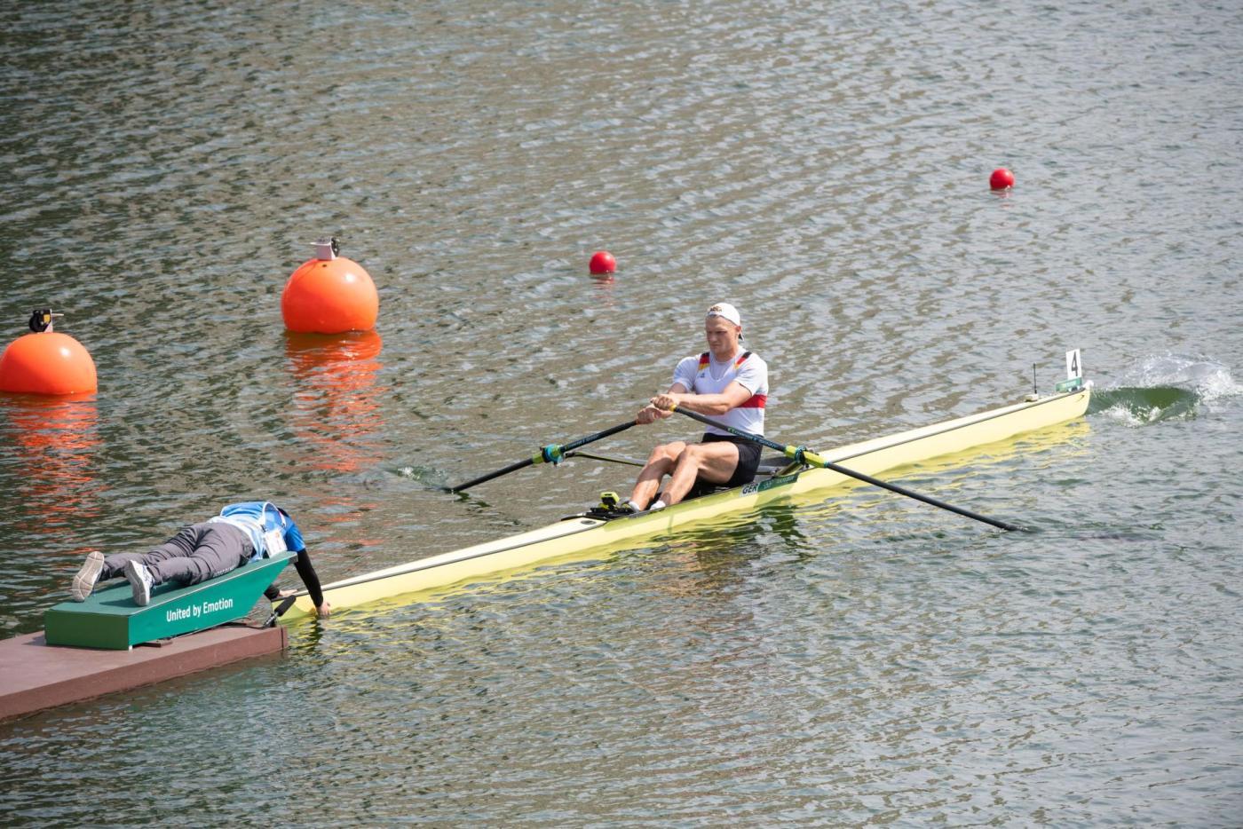 Einen Tag nach seinem 25. Geburtstag hat Oliver Zeidler (Donau-Ruder-Club Ingolstadt e.V.) sein Viertelfinale im Einer souverän gewonnen. Der Weltmeister fand schnell seinen Rhythmus und kontrollierte das Rennen über die gesamte Strecke. Mit knapp einer Länge Vorsprung vor dem Brasilianer Ferreira und dem Litauer Griskonis zog er ungefährdet ins Halbfinale ein. Auch in den anderen Viertelfinals wurden die Favoriten ihrer Rolle gerecht. Überraschungen blieben bisher aus. „Von der Hitze her ging es, der Gegenwind hat das Rennen eher in die Länge gezogen, das war dann schon recht hart. Nachdem der Litauer auf mich so gewirkt hat, dass er sich bei 1750 m immer noch nicht sicher war, ob er sich den Brasilianer noch holen will oder nicht, hatte ich natürlich auch ein bisschen was zu tun, um das ganze zu verwalten. Aber am Ende bin ich mit dem Rennen sehr zufrieden“, so Zeidler, der nun im Halbfinale den nächsten Schritt machen möchte. „Ich habe eben die Setzung der Halbfinals gesehen. Ich habe glaube, ich habe den besseren Lauf erwischt. Der Grieche ist natürlich ein unangenehmer Gegner. Sverri hingegen ist ja mein Standard-Halbfinalgegner. Mal schauen, was passiert.“ (Halbfinale, 29. Juli, 11:10 Uhr, 04:10 Uhr dt. Zeit).