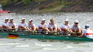 Nach dem etwas überraschenden dritten Rang im Vorlauf musste der von Christian Viedt trainierte Achter heute den Umweg Hoffnungslauf nehmen. Mark Hinrichs, Henry Hopmann, Benedict Eggeling, Floyd Benedikter, Tassilo Von Müller, Mattes Schönherr, Julian Garth, Schlagmann Jasper Angl und Steuermann Till Martini (Limburger Club für Wassersport 1895/1907 e.V./RC Hansa von 1898 e.V. Dortmund/Ruder-Club Favorite Hammonia Hamburg/RV Münster von 1882 e.V./RK am Baldeneysee e.V., RC Potsdam e.V./Crefelder Ruder-Club 1883 e.V./ RV 'Neptun' e.V. Konstanz/Olympischer Ruderclub Rostock von 1956 e.V.) lösten diese Aufgabe aber souverän und zogen mit eineinhalb Längen Vorsprung vor Italien als Sieger ins Finale ein. Mit 5:26,30 Minuten blieben sie nur vier Sekunden über der Weltbestzeit.