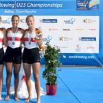 Auch hier gab es dank zahlreicher Meldungen drei Vorläufe, auch hier ging es um den Einzug ins Semifinale: Deutschland gewann mit Marie-Sophie Zeidler (Donau-Ruder-Club Ingolstadt e.V.), Luise Bachmann (Ruderverein Ingelheim 1920 e.V.), Tabea Kuhnert (SC Magdeburg e.V. Abteilung Rudern) und Schlagfrau Sarah Wibberenz (Ruder-Club Havel Brandenburg e.V.) und mit über 15 Sekunden Vorsprung den Vorlauf. Selbstbewusst können die vier Athletinnen am Freitag gegen Estland, Schweiz, Polen, Italien und Russland und die noch unbekannten Sieger der Hoffnungsläufe antreten.