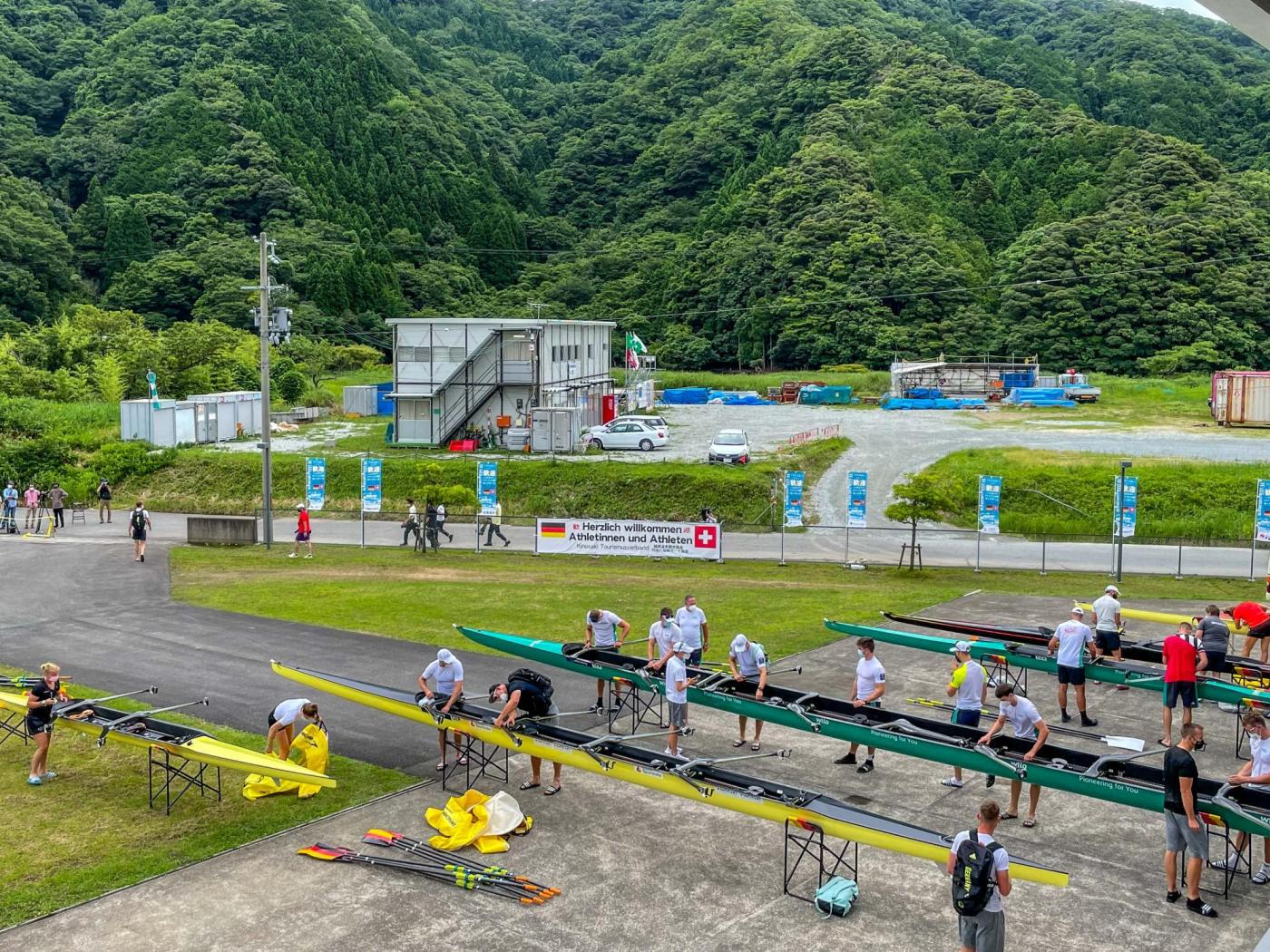 2.000 Meter legen unsere Ruder-Olympioniken im Rennen zurück – und 12.000 Kilometer sind bereits geschafft: Nach Booten und Material ist nun auch die Nationalmannschaft wohlbehalten im Trainingslager in Kinosaki, Japan, angekommen.