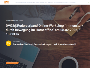 Am heutigen Dienstag, den 08.02.2022, nahm die Geschäftsstelle des Deutschen Ruderverbandes an einem Online-Workshop teil, welcher von unserem Kooperationspartner DAK-Gesundheit in Zusammenarbeit mit dem Deutschen Verband Gesundheitssport und Sporttherapie e.V. initiiert und geleitet wurde. Moderatorin Saskia Gräfingholt stellte wichtige und interessante Informationen vor, wie man Bewegung in den Büro-/ Home-Office-Alltag einstreuen kann, um seine physische und psychische Gesundheit zu stärken.