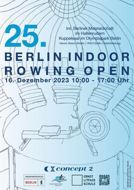Die 25. Berlin Indoor Rowing Open finden am 16. Dezember 2023 von 9 bis 16.30 Uhr im historischen Kuppelsaal auf dem Olympiagelände statt. Veranstalter ist der Landesruderverband Berlin.