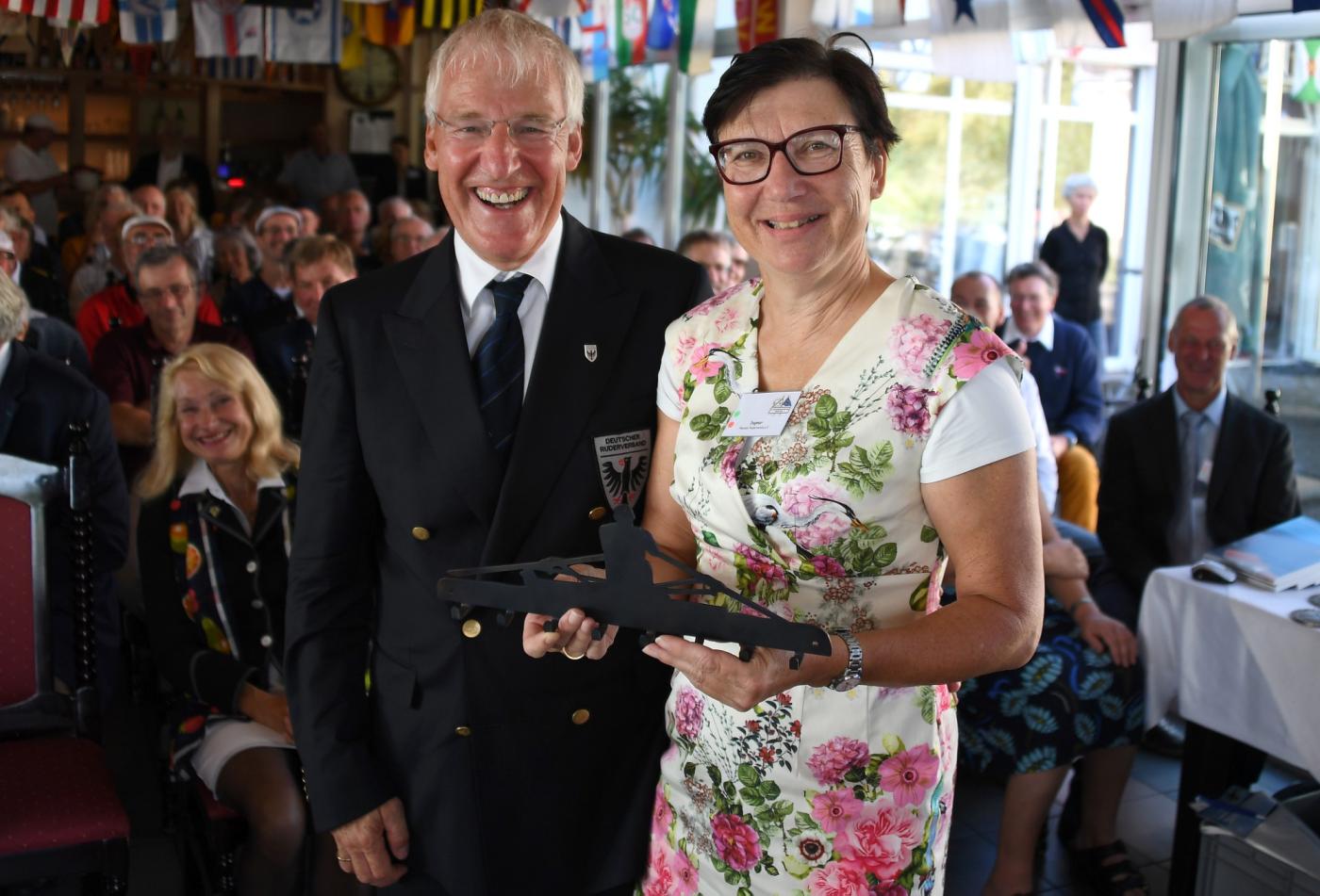 Es folgten die Ehrungen der Fahrtenabzeichen. Ruderer, die das Fahrtenabzeichen des DRV zum 25. Mal bis hin zum 65. Mal erfüllt haben, bekamen eine Urkunde und eine Nadel. Die Urkunde zur 65. Erfüllung des Fahrtenabzeichens wurde erst zum zweiten Mal seit Bestehen des Abzeichens überreicht. Daher war der Jubel groß, als der 90-jährige Lothar Brandt (Pro Sport Berlin 24 e.V.) seine Ehrung entgegennahm. Am Tag zuvor war er noch die 53 km von Köln bis Neuss aktiv mitgerudert.