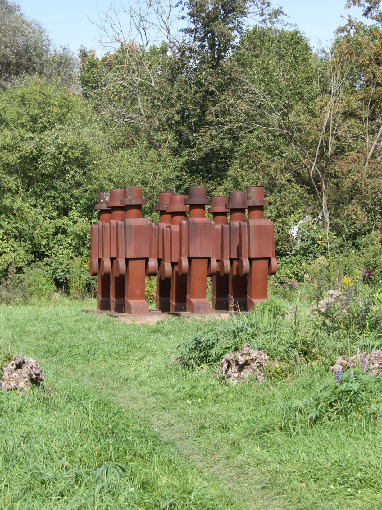 Wer seine Seele nicht beim Rudern baumeln lassen wollte oder konnte, hatte die Möglichkeit am alternativen Landprogramm teilzunehmen. Ika Weißenfeld-Thiemann (Neusser RV), die Betreuerin des Landprogramms, zeigte den Teilnehmern das Museum Insel Hombroich und organisierte einen Künstler-Spaziergang. Das Museum ist ein reines Tageslichtmuseum in einem Landschaftsschutzareal mit zehn begehbaren, teils als Ausstellungsgebäude genutzten Skulpturen. Um Kunst und Natur sinnlich erfahrbar zu machen und keine Ablenkung zu erzeugen, wird neben künstlicher Beleuchtung auf Beschilderungen, Bildlegenden und jegliche Didaktik verzichtet. Im Rahmen der Führung erzählte ein Künstler, der vor Ort arbeitet, wie die Kunst gesehen werden kann. Ika Weißenfeld-Thiemann ist begeistert von der Vielfältigkeit der angelegten Insel: „Dieses Leben und Arbeiten in Zusammenhang mit der Natur ist einzigartig. Das ganze Gelände lädt ein die Seele baumeln zu lassen und die in die Natur integrierte Kunst mit allen Sinnen aufzunehmen.“