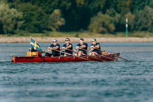 Wiederkommen wollen auch die Männer aus Arnhem. Rein sportlich gesehen, haben die Rhein-Anrainer bei ihrer Premiere direkt einen Preis mitnehmen können, obwohl der Rhein zwischen Leverkusen und Düsseldorf andere Bedingungen parat hält als am unteren Niederrhein. „Wir trainieren auf dem Rhein mehrmals in der Woche, aber der Rhein in Arnheim ist etwas anders als hier. Er ist etwas ruhiger, da ist es leichter zu rudern“, offenbart Martin ten Voorde. „Wir wussten, dass der Rhein hier etwas belebter ist, aber wir haben viel Spaß gehabt.“ Erwartungen hatten die Niederländer nicht, außer ans Ziel zu kommen. Das schafften sie nach 3:29:12 Stunden und waren damit das langsamste Boot in der Wertung. „Wir haben nicht auf die Pauke gehauen, um uns schnell zu machen. Wir sind ja nicht mehr die Jüngsten“, so der Mann von Jason Arnhem. „Wir wussten vorher auch nicht, dass das langsamste Boot in der Wertung eine Kiste Bier bekommt. Darüber sind wir richtig gerührt.“ Für ihre Rückkehr im Jahr 2024 versprachen sie, sich auf dem Rhein etwas mehr Mühe zu geben und die Kiste Bier selber mitzubringen.