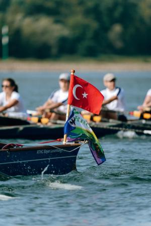 Und die Brauchtumsveranstaltung wies erneut einige Premieren auf. Erstmals kamen elf Aktive aus der Türkei. Andac Ozkan von Balikadamlar Istanbul hatte gemeldet. Ebenfalls erstmals dabei waren die Niederländer von der Roeivereniging Jason Arnhem. Und erstmals dabei war ein 103 Jahre altes Klinkerboot des Classic Boat Clubs aus Mülheim an der Ruhr. Insgesamt kamen 804 Ruderer und Ruderinnen aus neun Nationen in 162 Booten in Leverkusen am Startort zusammen und wurden einzeln alle 90 Sekunden auf die Strecke geschickt. „Ich glaube, dass wir mit Teilnehmern und Teilnehmerinnen aus Österreich, den Niederlanden, der Türkei, Spanien, England, Irland, Schweden, Frankreich und Deutschland so international wie nie sind“, meinte Regattaleiterin Melanie Ott. „Ich bin mit dem Meldeergebnis und dem Verlauf der Regatta sehr zufrieden.“