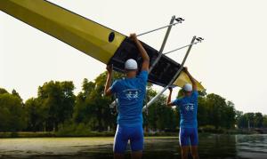 Zum Höhepunkt des diesjährigen Anruderns gehörte die vereinsinterne Auktion. Alte Riemen, wasserdichte Boxen und andere Ruderutensilien, die nicht mehr im Einsatz sind, kamen unter den Hammer. Versteigert wurde auch die Bootsspitze des Einers „Guppy“, mit dem Jugendwart Clemens Jeschke sein erstes Rennen fuhr. Dank eines kräftigen Gebots ist die Bootsspitze nun Familieneigentum. Die Versteigerung brachte dem Verein insgesamt 1.200 Euro, mit denen vier Paar neue Kinderskulls angeschafft werden können, weil die Kinder-Trainingsgruppe erfreulicherweise so groß ist, dass die bisherige Anzahl an Kinderskulls nicht ausreicht.