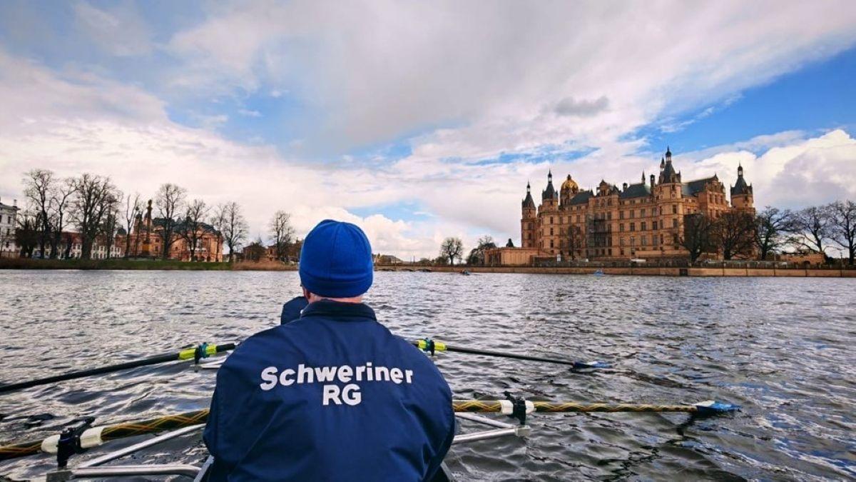 Dieser starke Wind darf einfach kein Vorzeichen sein für die aktuelle Rudersaison. Bei 24 km/h Nordost kämpfte sich die Flottenparade der Schweriner Rudergesellschaft in den windgeschützten Burgsee, um dort offiziell die Rudersaison 2025 zu eröffnen. Zum Anrudern versammeln sich traditionell die Boote vor dem Schweriner Schloss. Unter den Blicken vieler Spaziergängerinnen und Spaziergänger, die am Geländer der Schlossbrücke und des Schlossufers lehnten, baten die Sportlerinnen und Sportler das Petermännchen um eine gute und sichere Rudersaison. Dreimal ertönte dazu der Schlachtruf „Pierschiet, ahoi!“, der zum Glück nicht vom Winde verweht wurde.