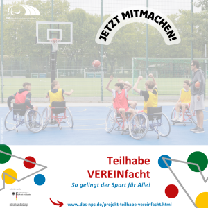 aus vielen Bereichen Deutschlands sind bereits Anträge zur Förderung eines neuen Bewegungsangebotes beim DBS eingegangen. Bei den antragstellenden Vereinen aus den Landessportbünden sind vor allem Sportangebote mit inklusiver Ausrichtung gefragt. Das freut uns sehr. Da unsere Förderkapazitäten noch nicht ausgeschöpft sind und wir Rückmeldungen bekommen haben, dass der relativ kurze Bewerbungszeitraum zum Jahresende für viele Vereine eine Herausforderung darstelle, haben wir beschlossen, die Bewerbungsfrist im „Projekt Teilhabe VEREINfacht“ bis zum 10.12.2023 zu verlängern.