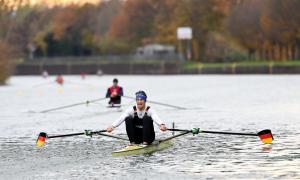 Den Langstreckentest im November in Dortmund fuhr sie trotz des reduzierten Trainings mit. Ihr Ergometer-Wert war gut, auf dem Wasser reichte es nur zu Rang sechs auf der 6000-Meter-Distanz. Erklärbar, aber damit war sie nicht zufrieden. Ebenfalls als Aktiver dabei war in beiden Disziplinen ihr Trainer, der sich seine gute Fitness mit Platz 23 auf dem Wasser bewies. Bei den Schwergewichten, obwohl er eigentlich bei den Leichtgewichten zu Hause ist. „Ich war zwei Kilo über der Grenze, hatte aber keine Lust abzunehmen. Ich mache das ja sowieso nur aus Jux und Dollerei“, sagt Kleinsorgen. Dass es „auf dieser Distanz schon ein Stück weit weh tut“, nimmt er dabei in Kauf. Kleinsorgen sitzt einfach zu gerne selbst im Boot. Er begleitet die Trainingseinheiten mit Alexandra auch nicht am Land auf dem Rad oder im Motorboot, sondern im eigenen Einer nebenher.