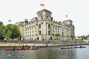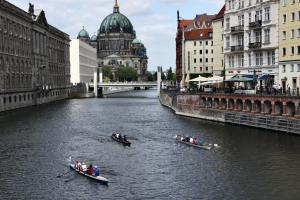 „Einfach genial", „ein Traum", „wunderschön", „ein Happening". Die Begeisterung der Ruderinnen und Ruderer ist riesig. Nach drei Jahren Pause sind sie am 14. Mai 2022 wieder auf der Innenstadt-Spree unterwegs. Das ist normalerweise verboten ist. Am „Tag des muskelbetriebenen Wassersports" wird eine Ausnahme gemacht. Motorboote und Ausflugsdampfer bleiben liegen. Von 9 bis 14 Uhr gehört die Spree zwischen Lessingbrücke in Moabit und Oberbaumbrücke in Friedrichshain-Kreuzberg rund 1.500 Ruder- und Kanusporttreibenden aus Berlin und ganz Deutschland. Sie genießen die schönste Stadtrundfahrt durch die Hauptstadt bei herrlichem Frühsommerwetter, lassen sich vor den berühmten Sehenswürdigkeiten treiben, machen Selfies mit strahlenden Gesichtern vorm Hauptbahnhof, vorm Reichstag, im Regierungsviertel, vorm Bodemuseum, vorm Dom, vorm Humboldt Forum. Sport trifft Sightseeing. Berliner und Gäste staunen. Sie verfolgen das Ereignis vom Ufer und von vielen Brücken aus.