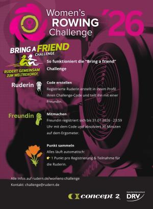 Der Deutscher Ruderverband ruft alle Ruderinnen dazu auf, die verbleibende Zeit aktiv zu nutzen und gemeinsam zu zeigen, welche Stärke und Reichweite der Frauen-Rudersport in Deutschland entfalten kann, wenn viele Einzelne ein gemeinsames Ziel verfolgen.