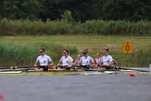 Der Vierer-ohne mit Tabea Koop, Tori Schwerin, Elena Carius und Annika Weber setzte im Finale den geplanten Blitzstart um, passierte die 1000m-Marke auf Rang drei und verteidigte die Bronze-Medaille souverän bis ins Ziel. „Sie haben auf den Punkt an der Oberkante dessen gerudert, was für die Mannschaft machbar war. Eine tolle und hochverdiente Medaille.“, zeigte sich Hoffmann begeistert. Im Achter, gemeinsam mit Bauer, Charlotte Hentschel, Esther Böning und Andra Aumann und Steuermann Florian Koch gab es den vierten Platz. „Ein solides Ergebnis nach den engen Doppelstarts. Rang fünf wäre in Ordnung gewesen, eine Medaille das Sahnehäubchen. Großer Dank geht an die Steuerleute, die für die Achter durch ihren organisatorischen Einsatz im Vorfeld der WUC wichtig waren. Florian Koch hat für den Frauen-Achter sogar Traineraufgaben übernommen“, so Dannhauer.
