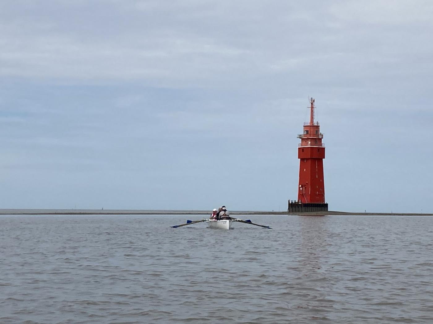 Mit Respekt vor der Außen-Weser, der Nordsee, der Tide, dem Wind und den Wellen hatte sich Fahrtenleiter Rüdiger Schlünzen heimische Unterstützung durch Iris Gerlach, Franziska Kösling und Klaus Mauer vom Bremerhavener Ruderverein sowie von Holger Hafemann vom Nordenhamer Ruderclub dazu geholt. Ein herzlicher Dank geht auch an dieser Stelle an die kompetente Betreuung während der Touren.