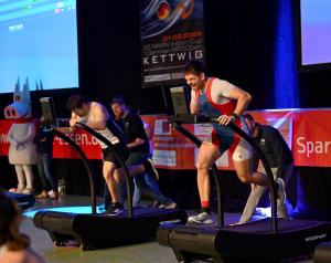 Es gab aber mit den neu eingeführten Run-Row-Run Wettbewerben noch eine weitere gravierende Neuerung. Hier trug man der rasanten Entwicklung im Beach-Sprint Rowing Rechnung, indem man neben den RP3 Ruderergometern noch 8 Woodway Curve Laufbänder in die Halle stellte und einen Parcours aufbaute, wo man 75 Meter laufen, 750 Meter rudern und nochmal 75 Meter laufen musste.