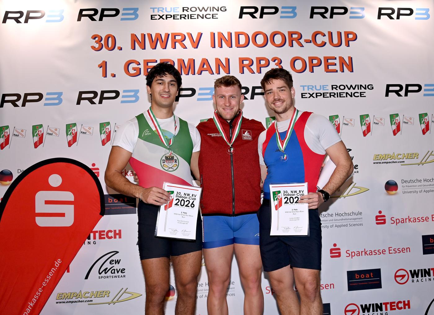 Zum Abschluss wurde der Ruderklub am Baldeneysee vom Nordrhein-Westfälischen Ruder-Verband als erfolgreichster Verein mit einem nagelneuen RP3 S Dynamic Black Edition belohnt. Die Sprecher des Vorstandes Tobias Weysters und Wilhelm Hummels überreichten Cheftrainer Thomas Wichelhaus das wertvolle Sportgerät. Allen fiel ein Stein vom Herzen, dass das Jubiläum und die Herausforderung so grandios verlaufen war. Man dankte dem gesamten Team für das Engagement und freut sich schon heute auf den „31. NWRV Indoor Cup“ und die „2. RP3 German Open“ am 31.01.2027 in „Deutschlands Ergo-Tempel Nr. 1“ der Sporthalle des Theodor-Heuss-Gymnasiums.