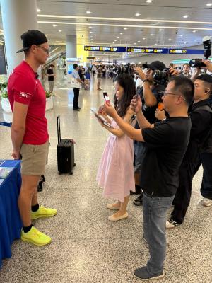 Besonderes Augenmerk lag gleich zu Beginn auf Olympiasieger und Weltmeister Oliver Zeidler. Der Einer-Spezialist reiste separat aus München an und landete mit Lufthansa-Flug LH726 gemeinsam mit seinem Vater in Shanghai. Am Flughafen wurde er von einer großen Journalistenrunde empfangen – ein Vorgeschmack auf die mediale Aufmerksamkeit, die ihn auch während der Wettkampftage begleiten wird.