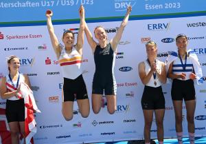 Seit drei Tagen kocht der Baldeneysee in Essen. 1268 Sportler:innen rudern um den Titel der Junioren- und Jahrgangsmeisterschaften. Heute haben v.a. die U23-Sportler:innen für ihre Finals nochmal einen Gang höher geschaltet. Auch die PPT GmbH, unsere Streaming-Profis, haben für die beiden Finaltage aufgerüstet und fünf weitere Kameras für den Livestream im Einsatz. Insgesamt sind somit elf Kameras inklusive der Drohne und des Kamerabootes auf und um den See unterwegs, damit alle Daheimgebliebenen hautnah dabei sein können. Heute konnten neben spannenden Rennen auch schöne Siegerehrungen der U23-Finals angeschaut werden.