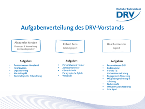 Der Vorstand Finanzen & Verwaltung, Alexander Kersten, sorgt dafür, dass im DRV alles rund läuft: Von der Personalbetreuung der Hauptamtlichen in Hannover und Ratzeburg über Etatplanung, Buchhaltung und Steuerangelegenheiten bis hin zur Verantwortung des Marketings und der Betreuung von Sponsoren. Auch die strategische Verankerung von Nachhaltigkeit in der Verbandsarbeit fällt in seinen Aufgabenbereich. Außerdem ist er als Sprecher des Vorstands die Schnittstelle zum Präsidium.