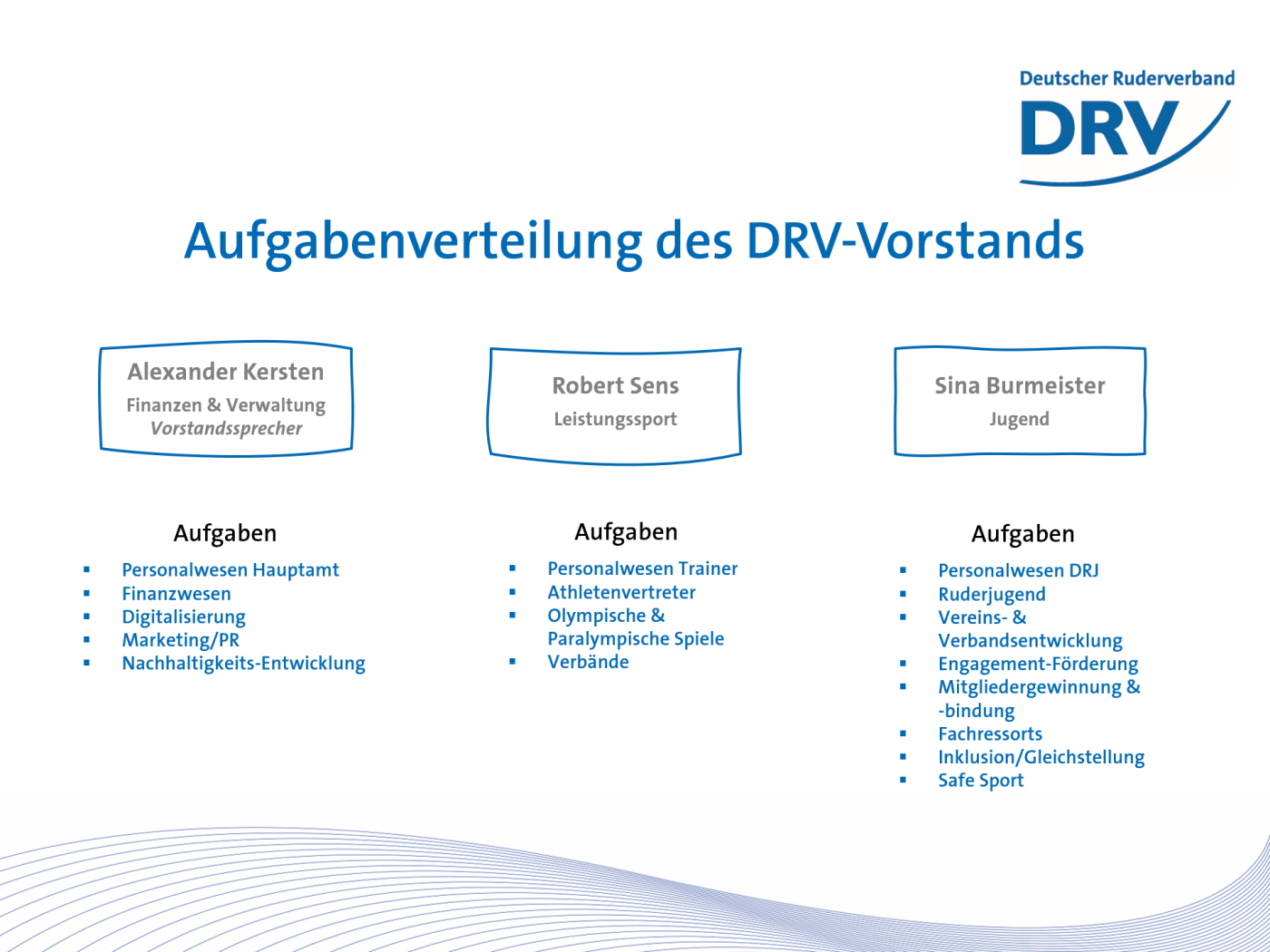 Mit der Etablierung hauptamtlicher Vorstände schafft der DRV eine professionelle Grundlage für die Zukunft. Kersten, Sens und Burmeister bündeln ihre Kompetenzen, um das Rudern in Deutschland leistungsstark, inklusiv und zukunftsfähig weiterzuentwickeln – für den Spitzensport, den Nachwuchs und alle, die die Faszination Rudern teilen.