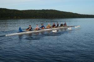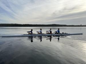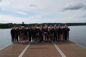 Es ist staubig, als die knapp 35 Sportler:innen und sechs Teamer:innen in der Ruderakademie Ratzeburg ankommen. Der Umbau ist derzeit immer noch voll im Gange, sodass viel Lärm und Staub den Alltag in der Akademie begleiten und viel Improvisation gefragt ist. Nichtsdestotrotz konnte der DRJ-Förderlehrgang, auf dessen Einladung die Sieger:innen der BW-Langstrecke folgten, am Domhof erfolgreich stattfinden. Die Woche vom 07.-14. Oktober 2023 war wieder mit lehrreichen Workshops gefüllt, sodass die Themen Anti-Doping, JuM-Bestimmungen, Sicherheit auf dem Wasser oder die Rudertechnik mit anschließender Videoauswertung nicht zu kurz kamen. Für sportliche Einheiten sorgten die Referenten Malte Mohr im Kraftraum oder Hendrik Bohnekamp im Athletikteil. Sylvia Pille-Steppat lässt es sich ebenfalls seit vielen Jahren nicht nehmen, vorbei zu kommen, um den 13/14-Jährigen den Para-Sport näher zu bringen und sowohl in der Theorie, als auch in der Praxis zu sensibilisieren. Der Rahmenprogrammpunkt war in diesem Jahr die Erlebnisbahn Ratzeburg, bei der die Teilnehmenden u.a. mit einer Draisine die Gegend erkundeten.