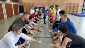 Im Februar 2024 kamen wir zusammen – eine buntgemischte Truppe – querbeet durch Lebensjahre und Rudererfahrung, ein bunter Strauß von 27 Lebenswegen und alle in einem Boot mit Namen Trainer C-Breitensport. Fernab von unterseeischen Eisbergen lotste uns König Andreas durch die Untiefen der ersten Kommunikation und formte mit uns aus dem heterogenen Haufen eine gesellig-gemeinschaftliche Mannschaft. Mit ruhigen Worten, fröhlich-akzentuiertem Humor sowie kreativer Demokratie und didaktischen Impulsen begleitete er uns durch 12 Tage, die wahrlich ein im Positiven vollgestopftes Programm enthielten.