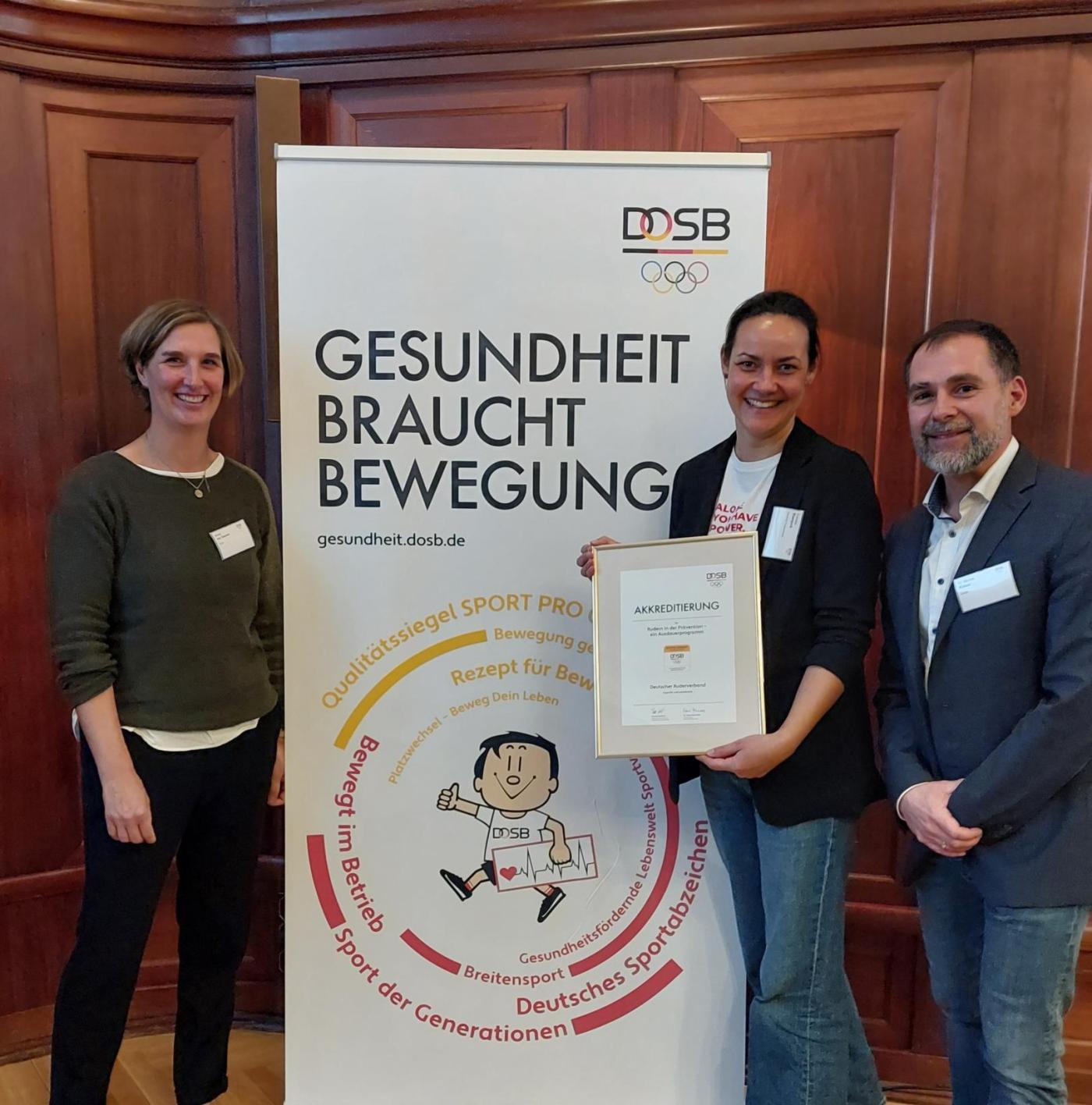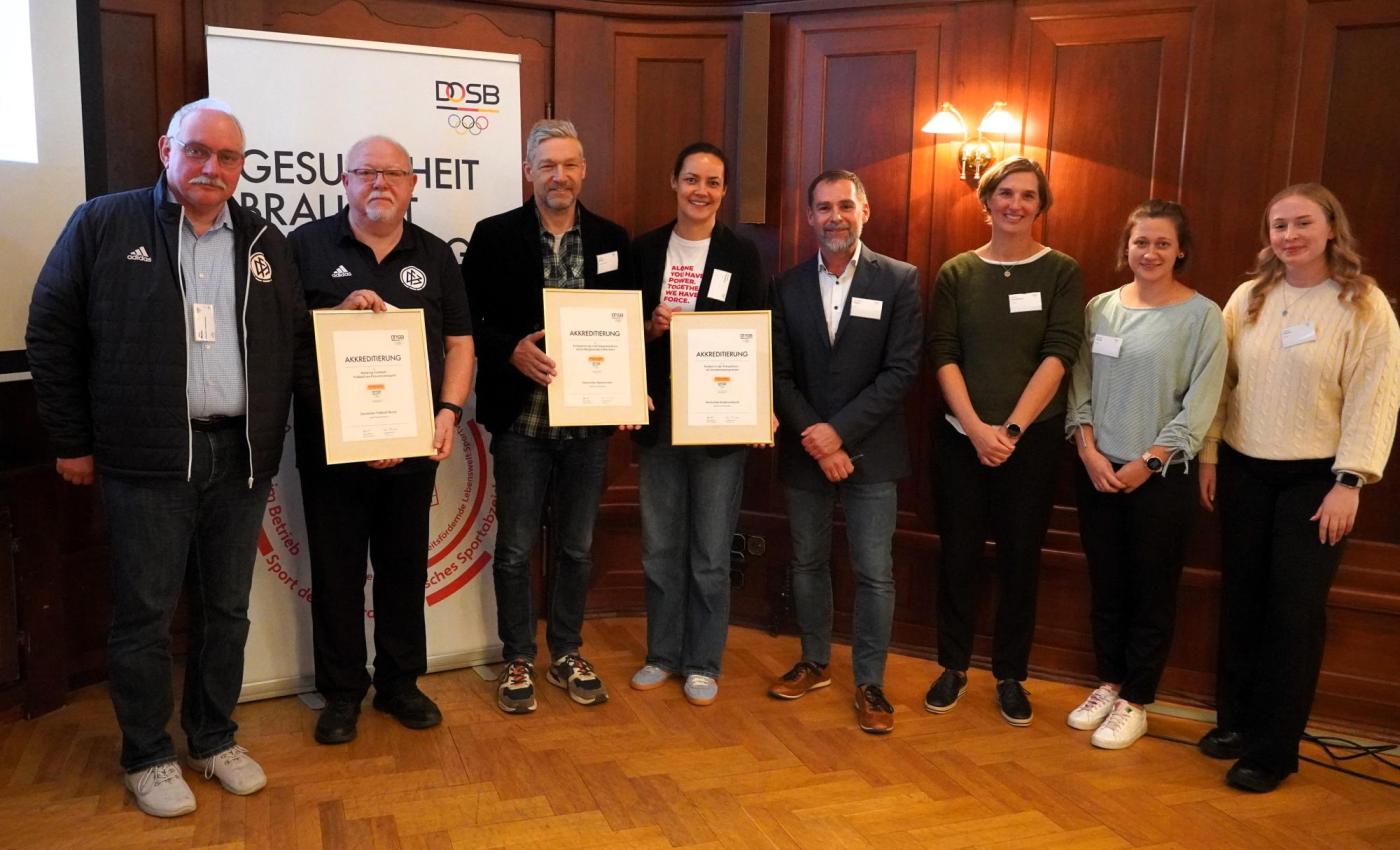 Der Deutsche Fußball-Bund (DFB), der Deutsche Ruderverband (DRV) und der Deutsche Alpenverein (DAV) bieten zertifizierte Gesundheitssportkurse in ihren Vereinen an. Auf dem Fachforum Breiten- und Gesundheitssport des DOSB konnten die drei Verbände nun ihre Akkreditierungsurkunde entgegennehmen.