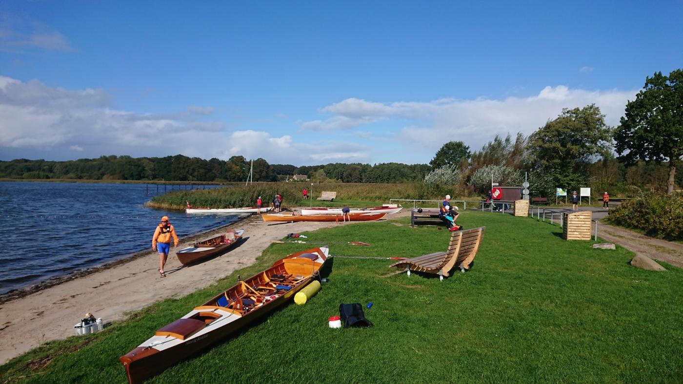 Noch am Freitagnachmittag, dem Anreisetag, ging es nach Kaffee und selbst hergestellten Kuchen schon das erste Mal in den Inriggern auf die Schlei. Die beginnende Dämmerung begrenzte den Ausflug, da wir kein weißes Rundumlicht dabei hatten.