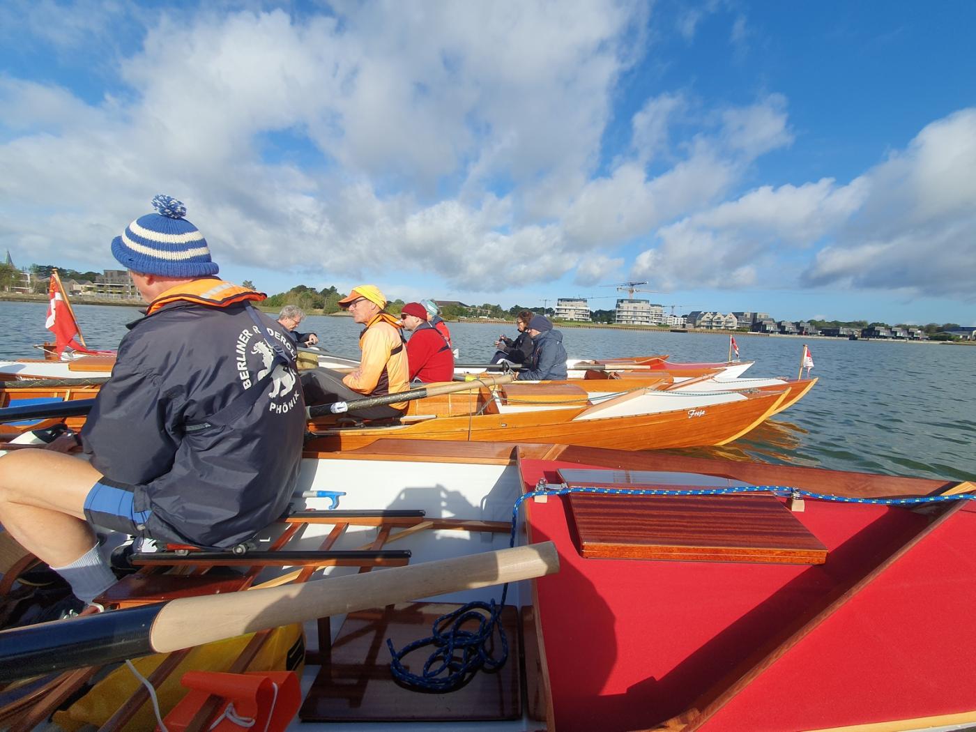 Das Sicherheitstraining, sprich Kentern und Entern eines Inriggers kostete bei dem kühlen Wetter wirklich Überwindung! Aber es musste sein! Mit Neopren-Anzügen ausgestattet wagten sich fast alle Teilnehmer dank der Motivation durch Katrin Frizsche, Jens Herzig und Niels Hendriksen an diese wichtige Übung. Letzter kam extra vom Danske Studenters Roklub aus Kopenhagen angereist.