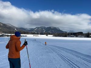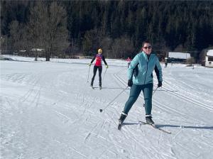 Die Teilnehmenden haben sich wundervoll verstanden und so konnte Stefan auf den Loipen in Bad Mitterndorf jedem Teilnehmenden, je nach individuellem Können, die unterschiedlichen Bewegungsformen des klassischen Skilanglaufens und später auch der Skating-Technik vermitteln. Dabei durften wir die wunderbare schneereiche Landschaft und den Blick auf die Berge genießen.