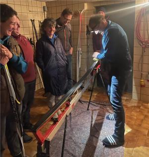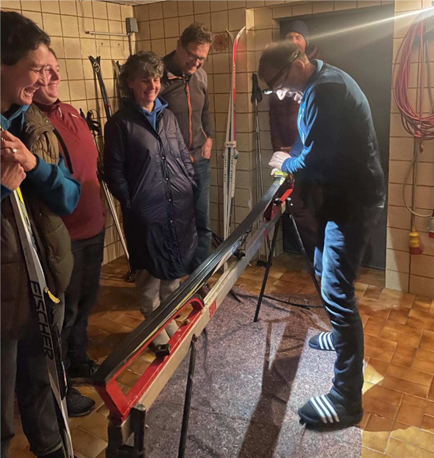 1. Grundlagen der klassischen Langlauf- und Skating-Technik Hierzu erhielten wir zuvor am Sonntag eine Einführung in die Wachstechnik von Skating-Skiern. Es wurden die unterschiedlichen Wachse und Temperatureigenschaften besprochen. Hierzu wurde auch erklärt, warum Skier gewachst werden müssen und welche Auswirkungen es hat, wenn Wachs verwendet wird, das nicht für die Temperatur des Schnees geeignet ist oder wenn zu wenig Wachs aufgetragen wird. Von der Reinigung des Skibelags bis zum Finish wurden die einzelnen Arbeitsschritte durchgeführt.
