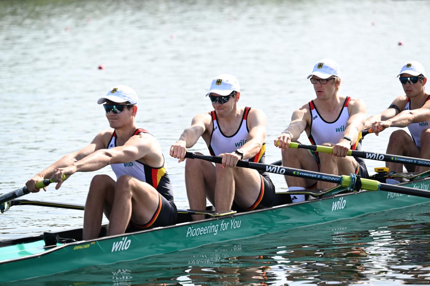 Der neuformierte Männer-Achter mit Benedict Eggeling, Laurits Follert, Olaf Roggensack, Mattes Schönherr, Max John, Torben Johannesen, Wolf Niclas Schroeder, Hannes Ocik und Steuermann Jonas Wiesen (RC Favorite Hammonia, Crefelder RC, RC Tegel, RC Potsdam, Olympischer RC Rostock, RC Favorite Hammonia, RU Arkona Berlin, Schweriner RG und RG Treis-Karden) ist im zweiten Vorlauf gegen Österreich und den Niederlanden am Start nicht gut losgekommen. Obwohl die Männer sich den zweiten Platz vor Österreich sicherten, mussten sie sich mit eineinviertel Längen Rückstand den Holländern geschlagen geben und müssen nun über den Hoffnungslauf gehen.