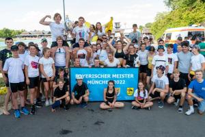 Die 50. Bayerischen Meisterschaften waren auf der Olympia-Regattaanlage in Mün-chen ein Ruderfest: Bei einer Rekordbeteiligung von 568 Ruderinnen und Rude-rern aus 28 Vereinen gingen am 23. bis 24. Juli in 138 Läufen 507 Boote aufs Wasser. Die Rudergesellschaft München 1972 machte sich selbst zu ihrem 50. Geburtstag das größte Geschenk: Sie gewann alle drei Pokale - den Jugendpokal, den Audi-Pokal für die Erwachsenen und den Bayerischen Löwen in der Gesamtwertung. Bayerns Innen- und Sportminister Joachim Herrmann kam als Schirmherr auch auf die Jubiläums-Re-gatta und taufte ein BRV-Boot. - Die Renn-Ergebnisse stehen auf der Homepage der Rudergesellschaft München (rgm72.de) und auf dem DRV-Portal.