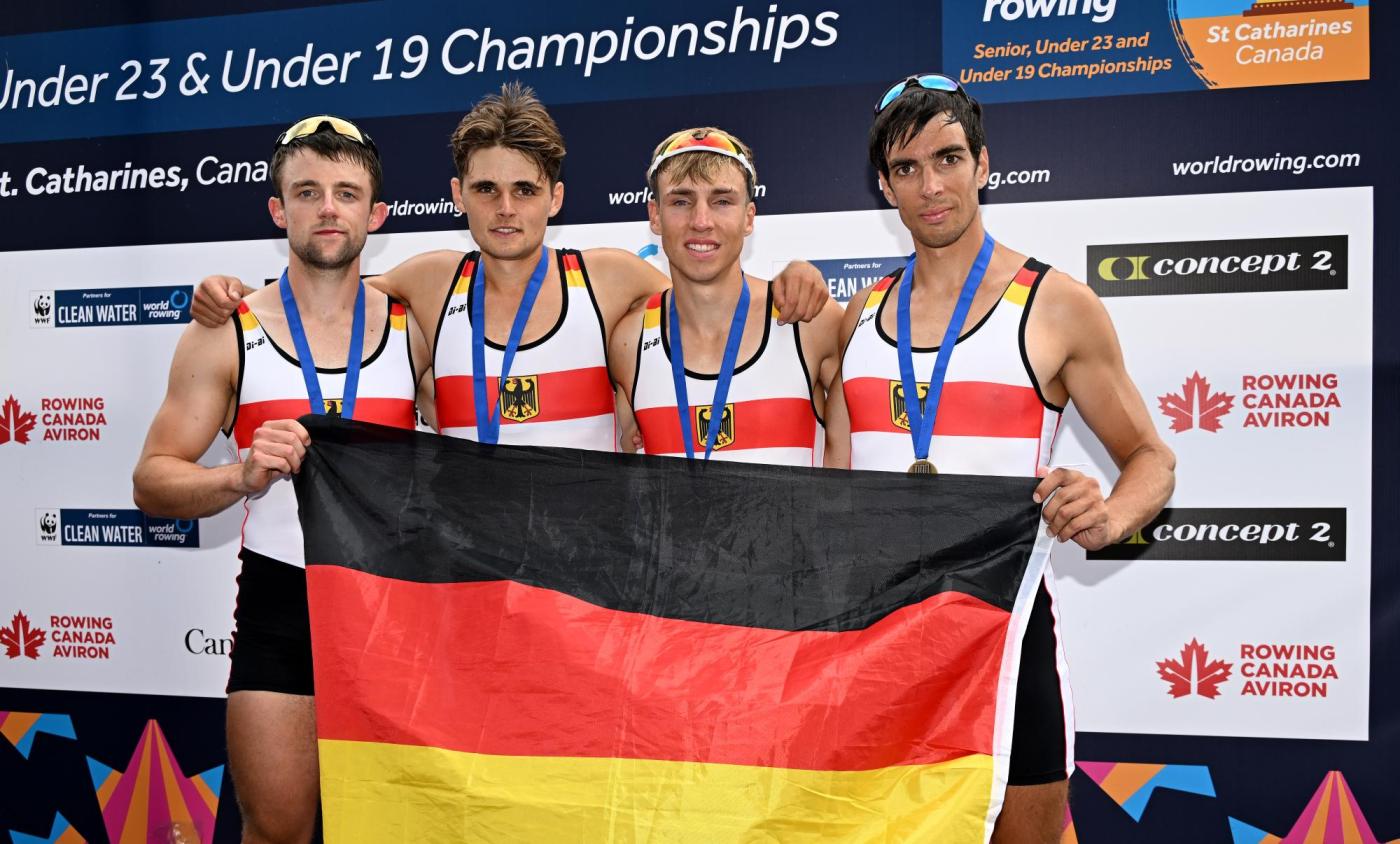 Der Leichtgewichts-Männer-Doppelvierer, bestehend aus Tim Streib, Moritz Marchat Fabio Kress und Joachim Agne (RG Speyer, RC Allemannia und ARC Würzburg), beendete das A-Finale auf dem dritten Platz. Nachdem sie das Bahnverteilungsrennen überzeugend gewonnen hatten, waren die Erwartungen hoch. Trotz eines optisch guten Rennens fehlte im Endspurt etwas, um die vorderen Plätze noch weiter zu attackieren. Die Enttäuschung über das Ergebnis ist spürbar: „Wir müssen noch analysieren, warum wir unsere Geschwindigkeit im Rennen nicht steigern konnten. Es war ein gutes Rennen, aber wir konnten nicht das letzte Quäntchen Leistung abrufen“, so das Team. Dennoch ist die Bronze-Medaille ein erfolgreicher Abschluss der Weltmeisterschaft.