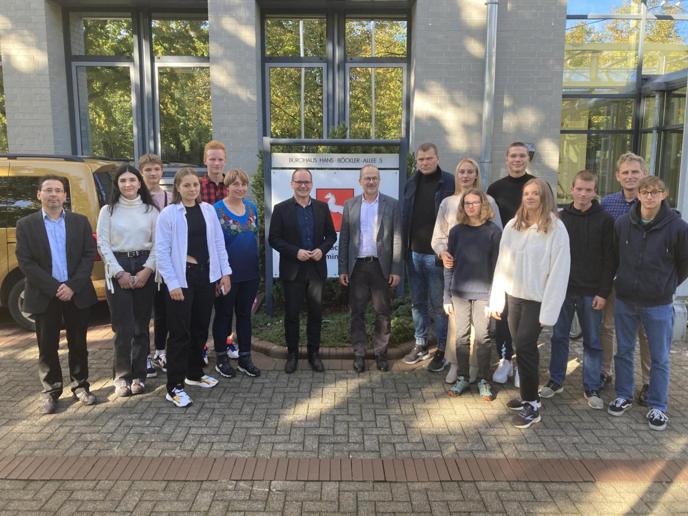 Dieses bemerkenswerte Beispiel war Anlass für Kultusminister Grant Hendrik Tonne, die Aktiven, Schulleiter der Humboldtschule Christian Steinert, das Trainerehepaar Oksana Zakharova und Yuri Zakharov, Ruderprotektor Gunther Sack sowie einige weitere Ruderinnen und Ruderer der Humboldtschule, die zusammen mit den ukrainischen Aktiven in einem Boot gestartet waren, am 04. Oktober mit einem Empfang im Kultusministerium für ihre Verdienste für das Bundesland zu ehren. In Berlin waren beide Doppelvierer der Humboldtschule in der Wettkampfklasse II mit ukrainischen Schülerinnen und Schülern besetzt, ein weiterer Junge hatte sich mit seiner Mannschaft im Jungen-Doppelvierer mit Steuermann der Wettkampfklasse III für das Bundesfinale qualifiziert.
