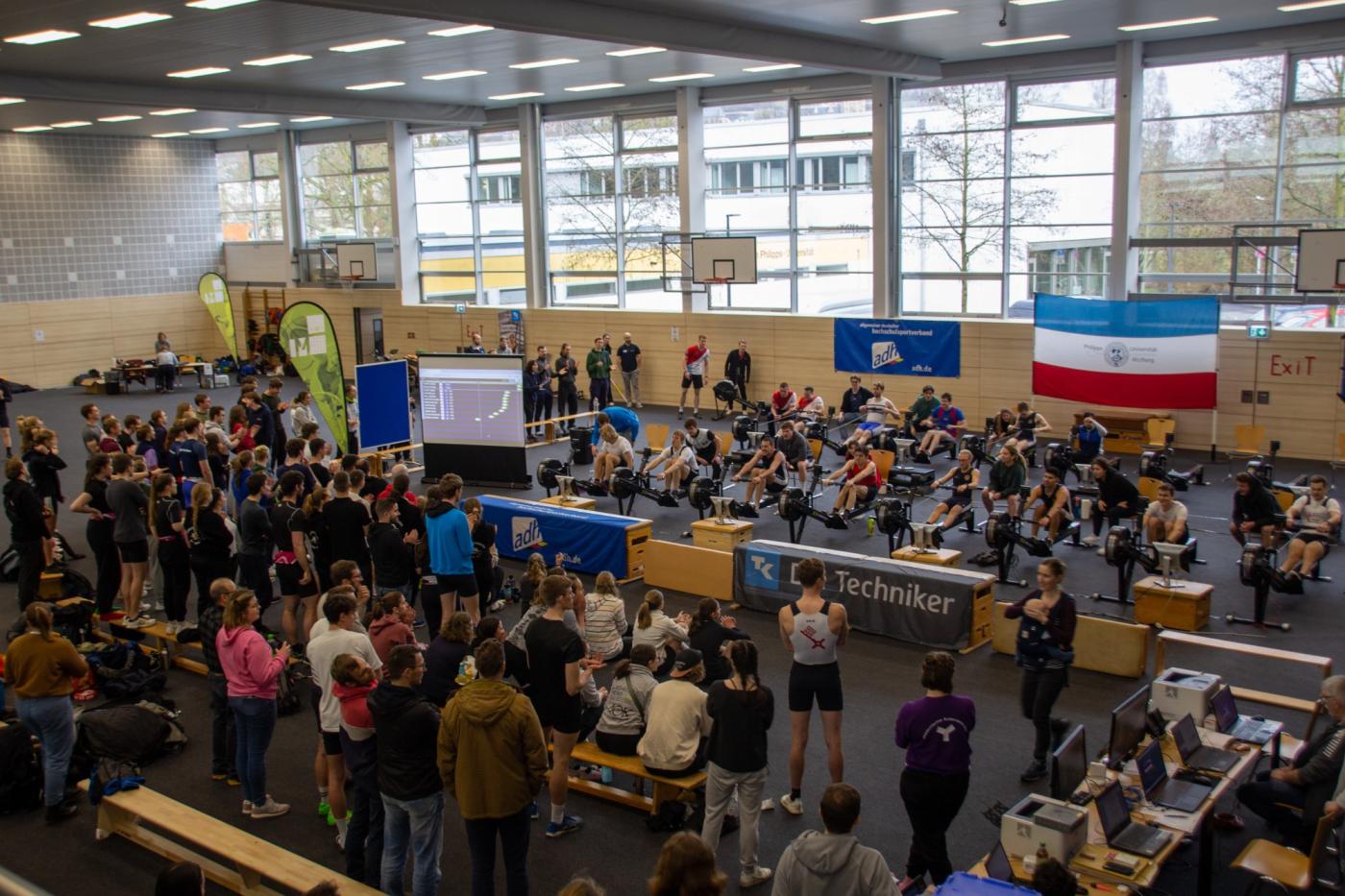 „Set ready - Attention“… nach dem ertönenden Startsignal verstand man sein eigenes Wort nicht mehr, während die Studierenden - lauthals angefeuert durch ihre Teams – die Ruderergometer auf volle Touren brachten. 170 Studierende haben am letzten Wochenende um die Titel der Deutschen Hochschulmeisterschaft Ergometerrudern (DHM) gekämpft. Das Zentrum für Hochschulsport der Universität Marburg hatte seine Sporthallen zu diesem Zweck in eine beeindruckende Wettkampfarena verwandelt, um dem Hochschulrudern in Deutschland eine Bühne zu geben.