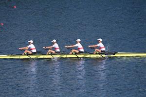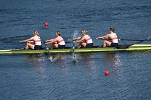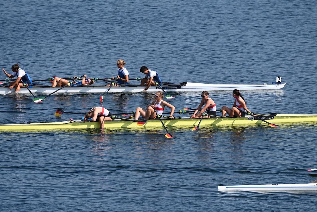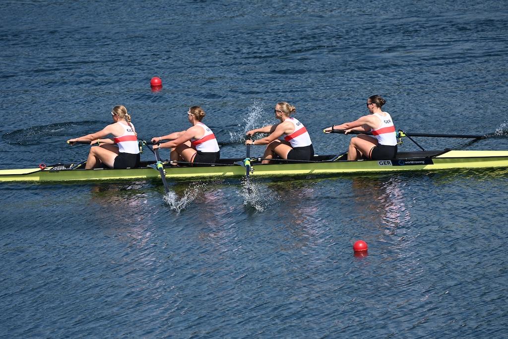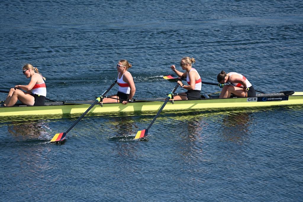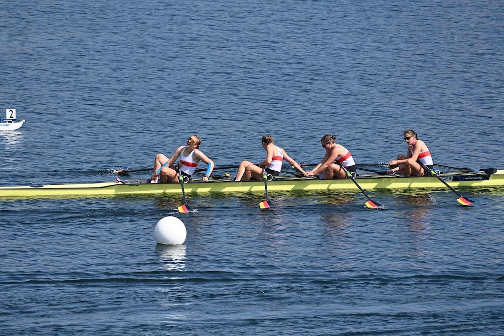 Der Juniorinnen-Doppelvierer mit Louisa Will, Ellen Bussian, Hannah Frenkler und Elena Schweisthal bestätigte mit Platz zwei hinter Tschechien seine starke Form mit einem mutigen Rennen. Sie sind absolut in der Lage ganz nach vorne zu rudern, das Feld ist von den Zeitabständen sehr eng.