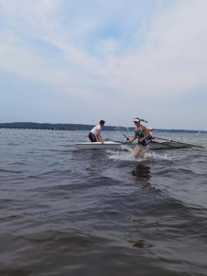 Der erste Teil der Woche stand ganz im Zeichen der sportlichen Grundlagen. Eine erste Ausfahrt bot für alle die Möglichkeit sich mit den Coastal Booten vertraut zu machen und die Besonderheiten zu erlernen. Darauf folgten schon die ersten Beach Sprint Einheiten, wenn auch der Slalom-Parcour zunächst ausgelassen wurde und eher das Ein- und Aussteigen und die effiziente Wende geübt wurden. Ein weiteres Highlight war der sportliche Ausflug in die Disziplin des Sprints. Mit Hilfe der Laufprofis des LW Weiche Flensburgs konnten die Sportlerinnen und Sportler einen spannenden Einblick in die richtige Lauftechnik gewinnen und wichtige Tipps für den Beach Sprint mitnehmen.