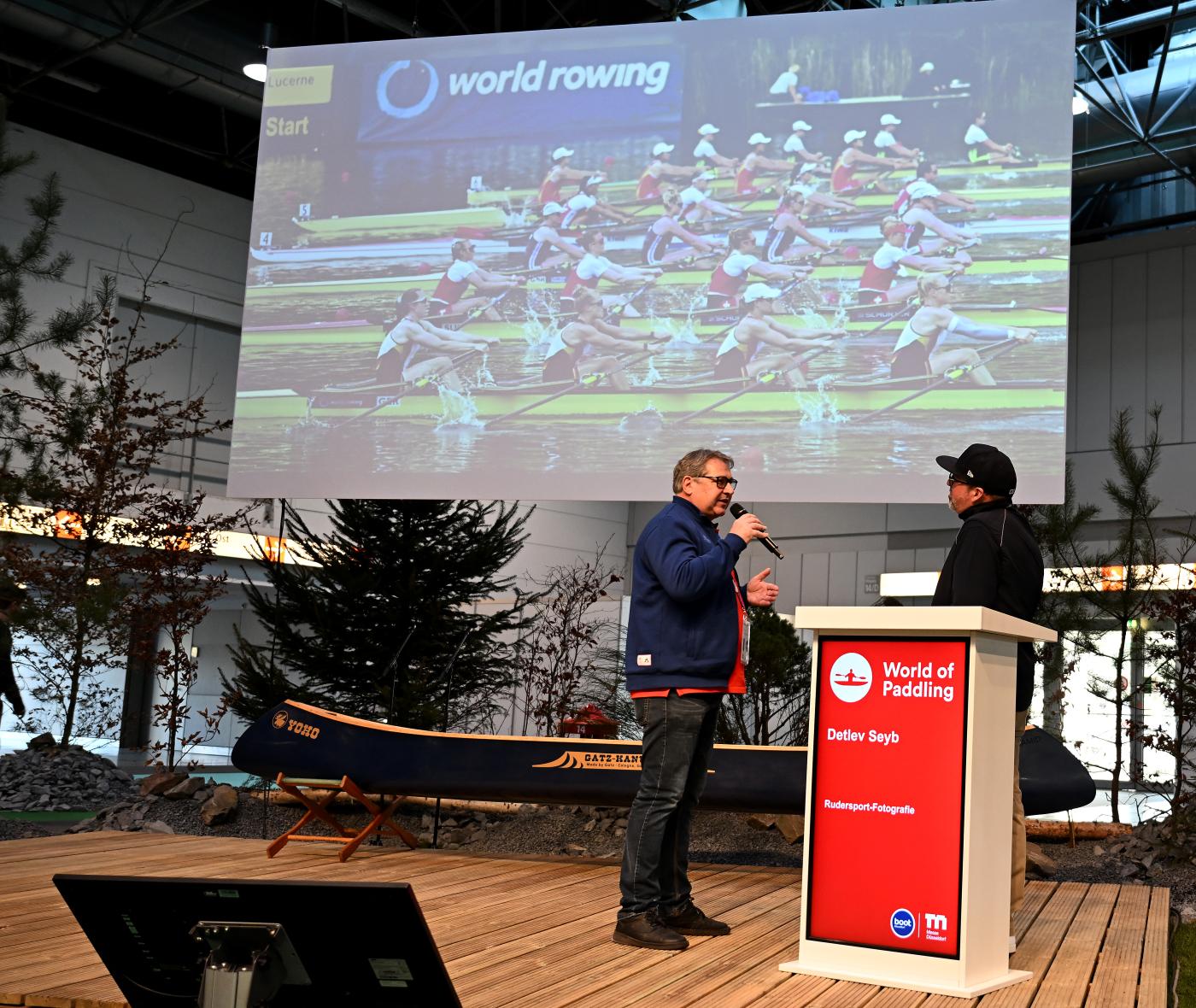 Auf der Aktionsbühne "World of Paddling" werden, neben vielen interessanten Beiträgen zur Sicherheit auf dem Wasser, Umweltschutzprogrammen anderer Wassersportverbände und Bootsreisen auf den verschiedensten Gewässern, täglich auch Vorträge zum Rudersport gehalten. Themen wie Inklusionsrudern (Cedric Ropertz, Duisburger RV), Rudern gegen Krebs (Eberhard Wühle, ETUF Essen), Coastal Rowing (Werner Stein, Neusser Ruderverein) und Freizeitrudern mit Wanderfahrten (Michael Stoffels, Vorsitzende des Fachressorts Wanderrudern) finden großen Anklang.