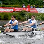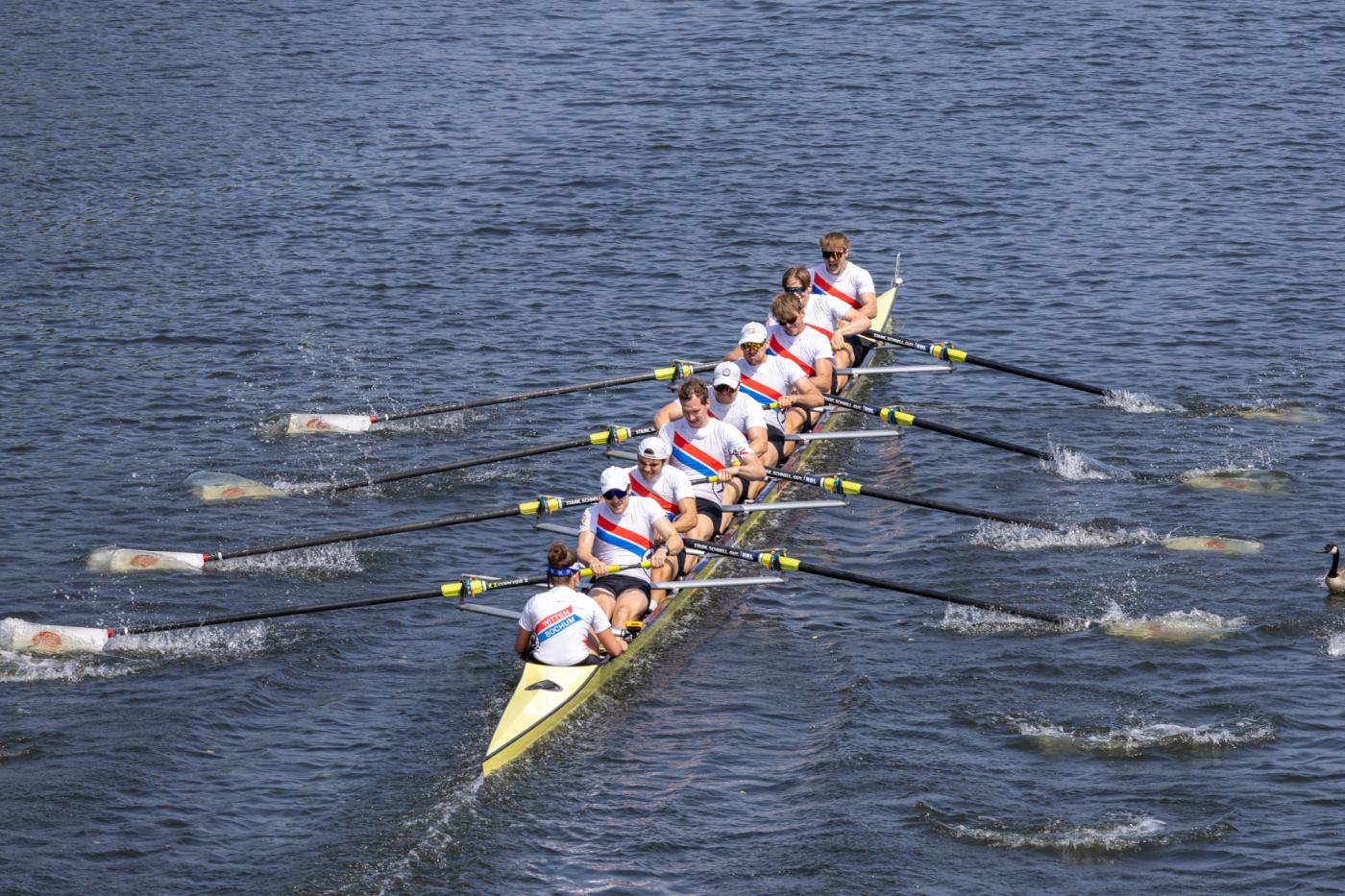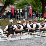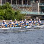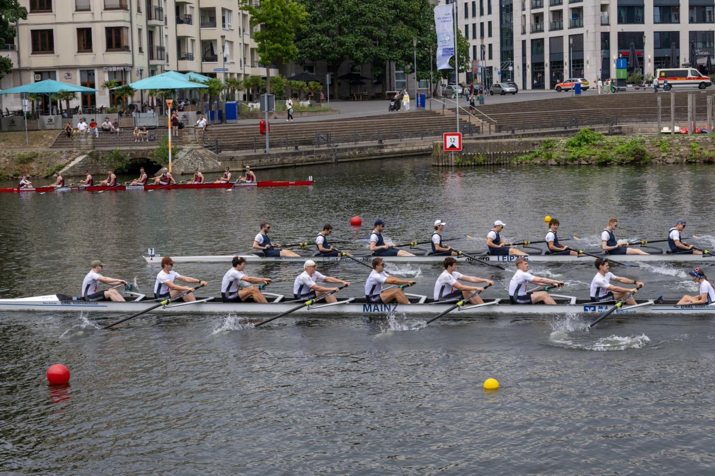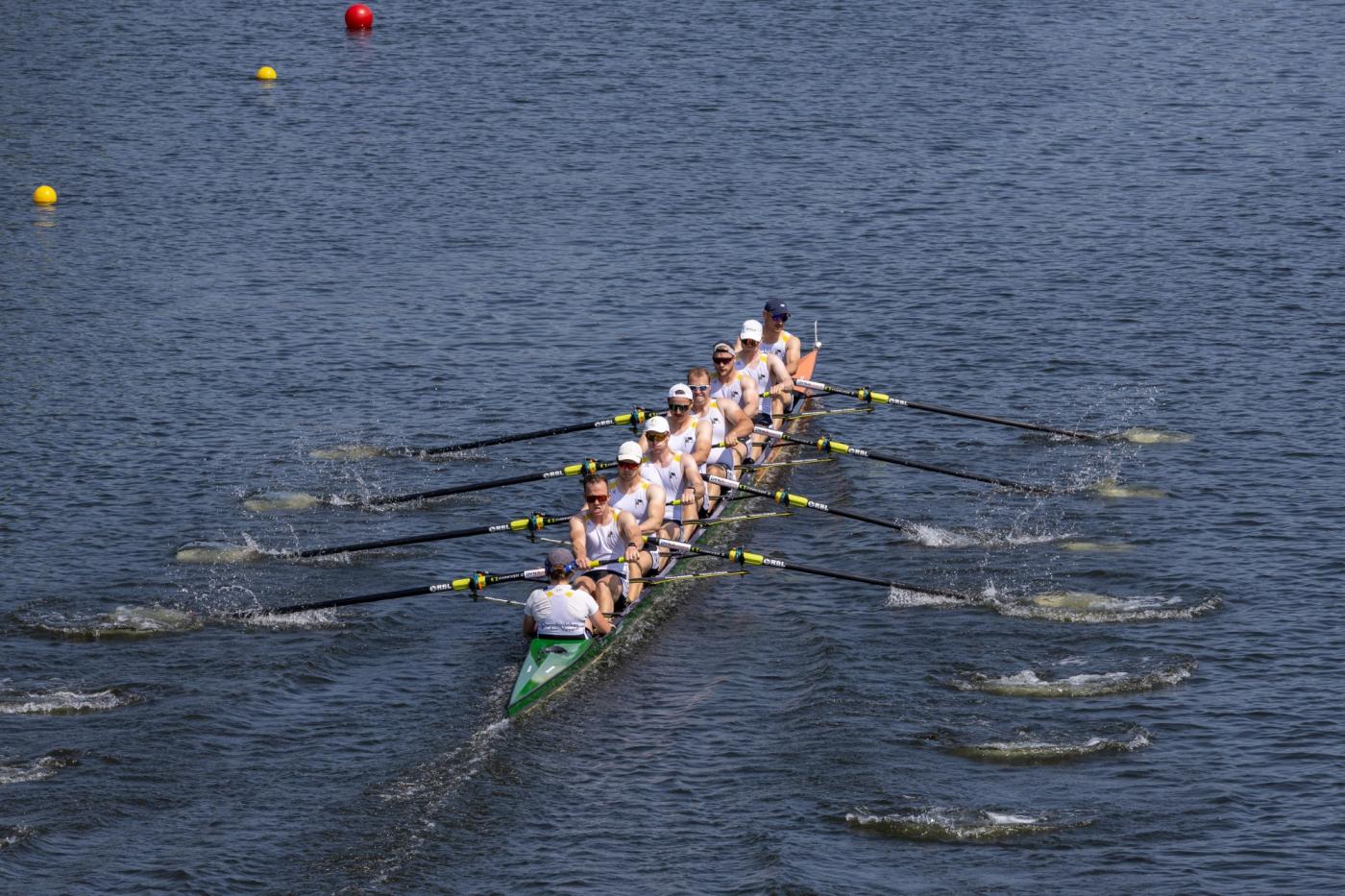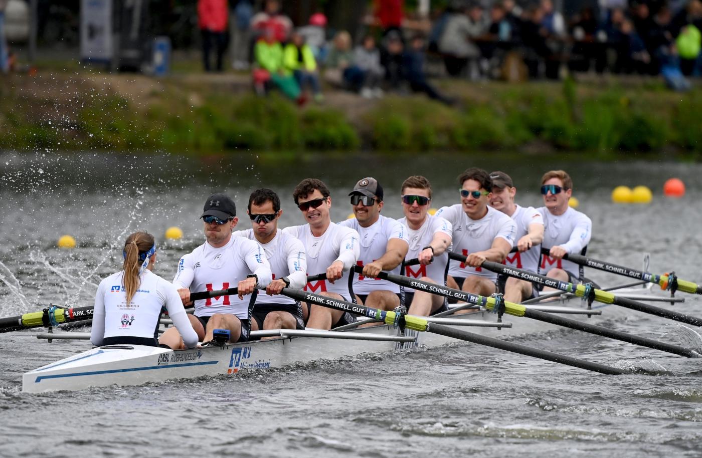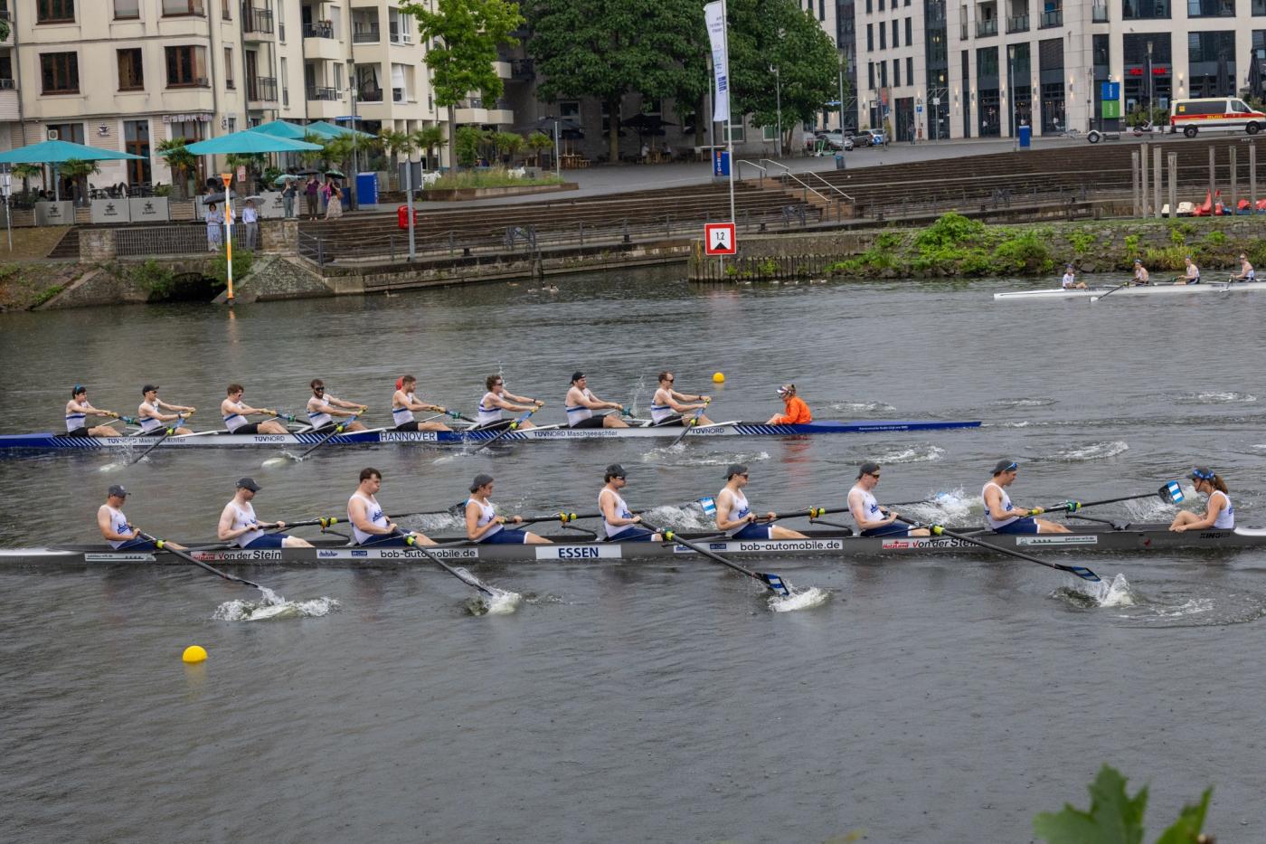 Anders als die Frauenteams konnten die Männerachter ihre Zeiten aus den ersten Läufen fast kontinuierlich verbessern und das trotz immer wieder auffrischenden Windes und kabbeligem Wasser. Angefeuert von ihren Steuerleuten lieferten sich im Viertelfinale der „Häuser unserer Zukunft“ – Ottoachter Magdeburg und der Amazone-Achter Osnabrück das bis dahin knappste Rennen. Sieben Hundertstel trennten die beiden Bugbälle und es dauerte einige Zeit, bis das Zielgericht das Osnabrücker Team als Sieger festgelegt hatte. Der Dr. Schumacher Achter aus Kassel zeigte seine Klasse im Viertelfinale und machte es den BOB Automobile Ruhrpiraten Essen schwer. Im Ziel hatten die Essener den Bug nur knapp vorne. Lange hatte auch der Leipzigachter im Halbfinale mit dem Germania-Achter mitgehalten. Bei der Zielhupe trennten beide Boote nur der Hauch von 7/10 Sekunden.