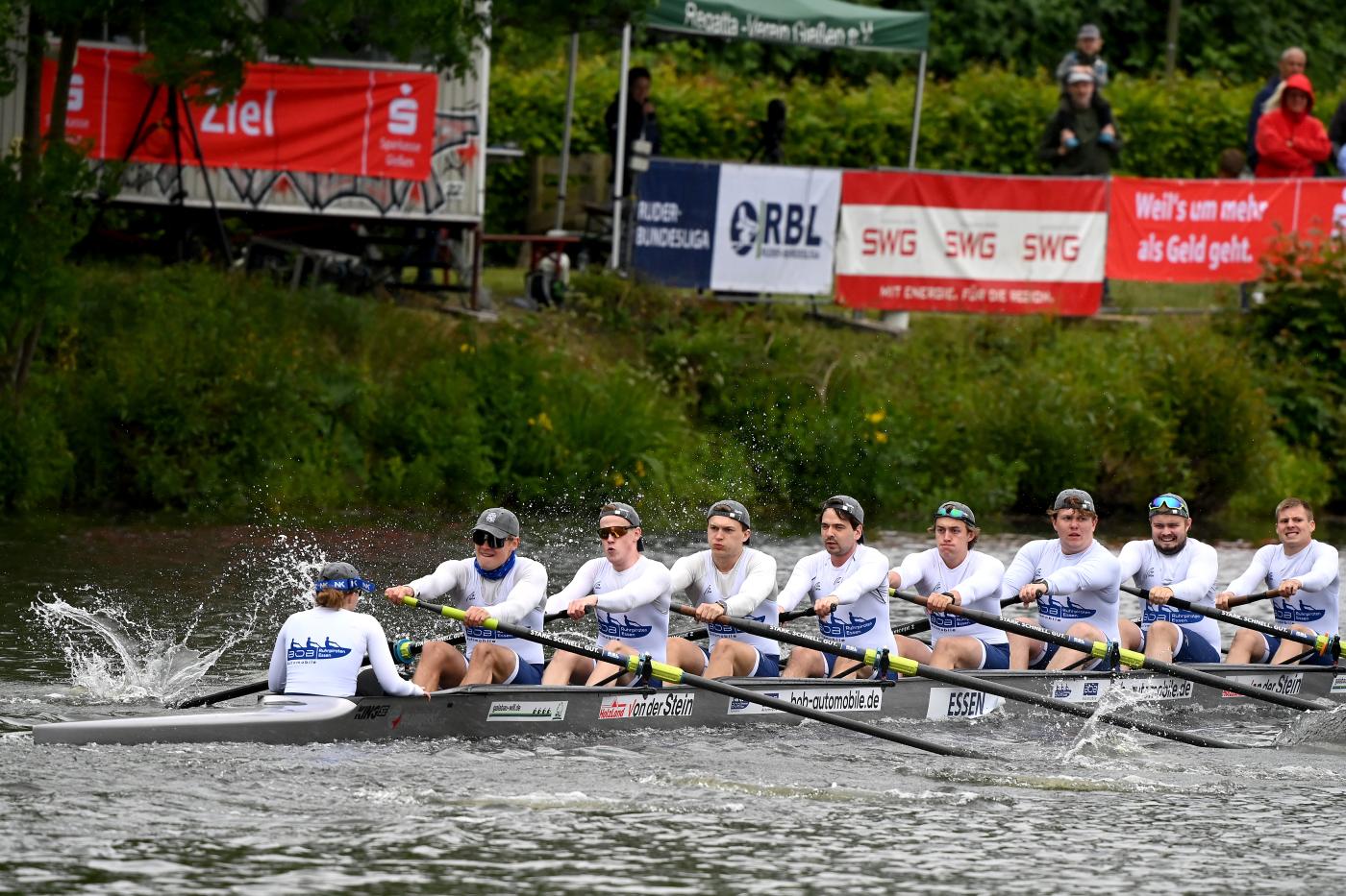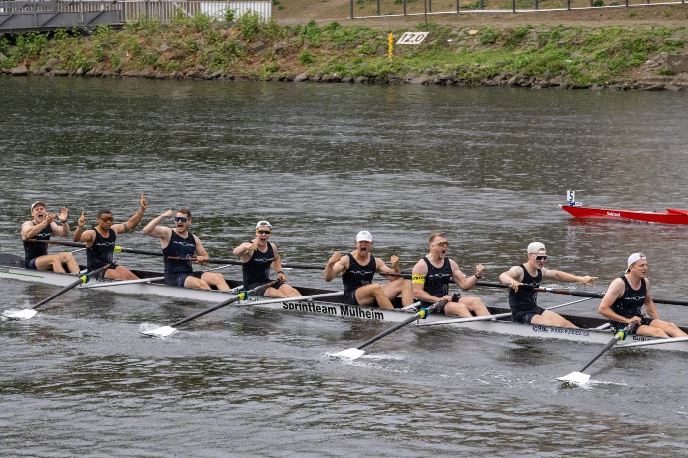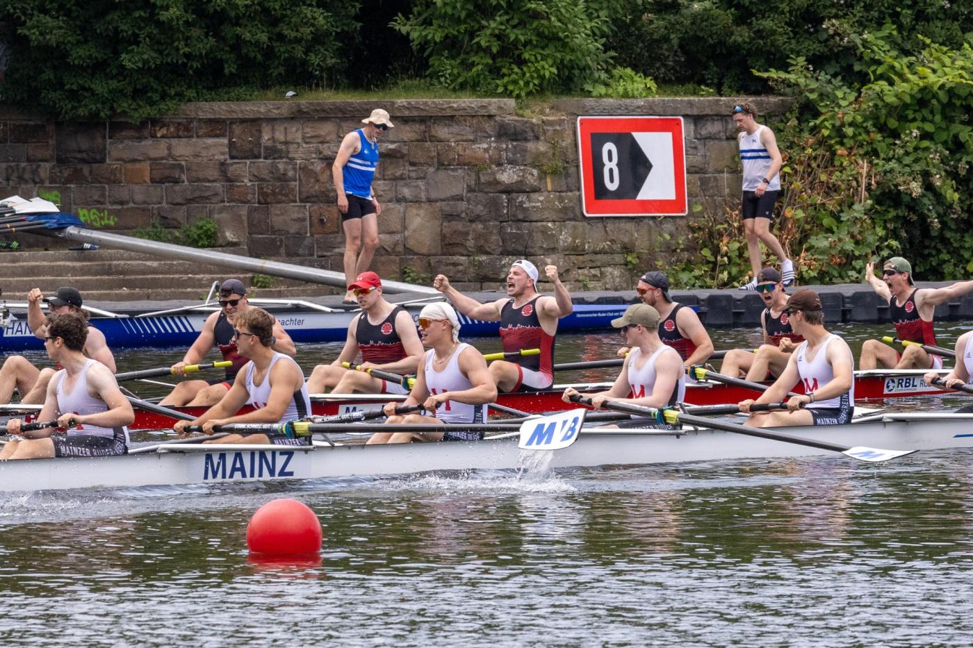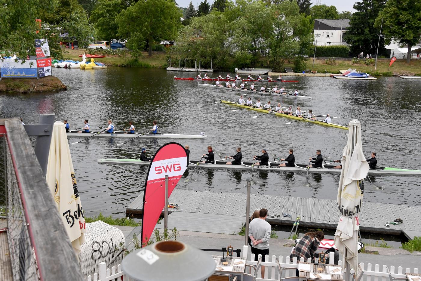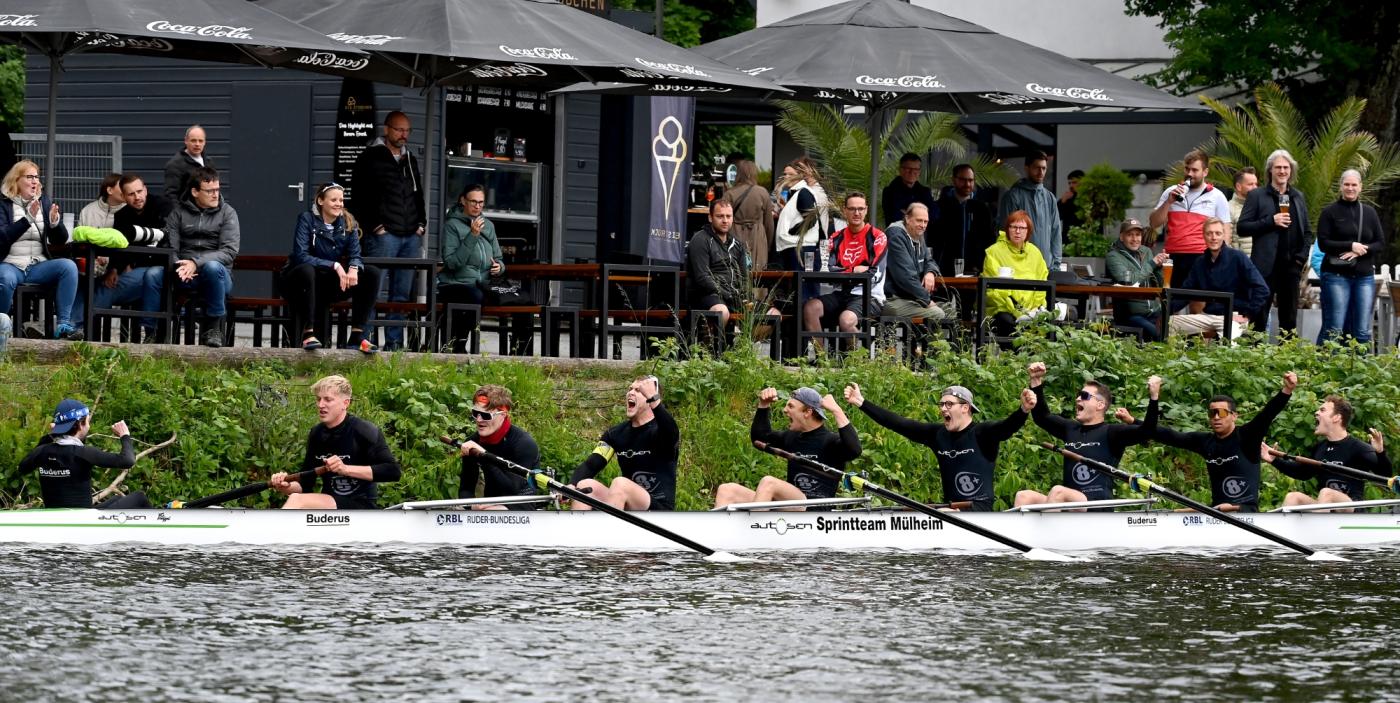 Im großen Finale kam es zur Wiederauflage des Zweikampfs aus dem letzten Jahr: der Ligachampion Autosen Sprintteam Mülheim auf Bahn 1 bekam es mit den Männern vom Wasserstraßenkreuz, dem Melitta Achter Minden – „Team Black“ zu tun. Unter den Anfeuerungen aller Zuschauer und Fans an der Strecke und den Kommandos der beiden Steuerleute ruderten beide Teams mit hoher Schlagzahl und sauberer Technik über die Lahn. Auf Streckenhälfte hatte Mülheim den Bugball nur knapp vorne als Schlagmann Vincent Schmitz im Mindener Boot die Schlagzahl nochmal erhöhte. Im Ziel reichte es dann mit 0,24 Sekunden für das Sprintteam aus Mülheim.