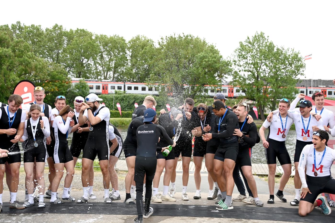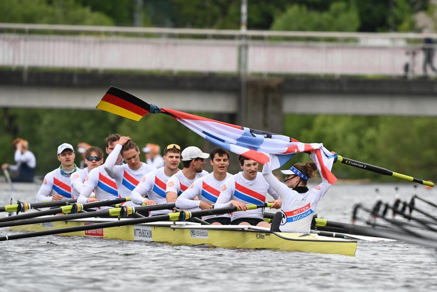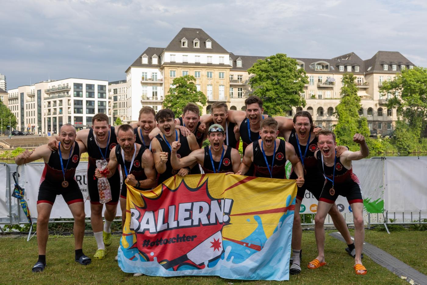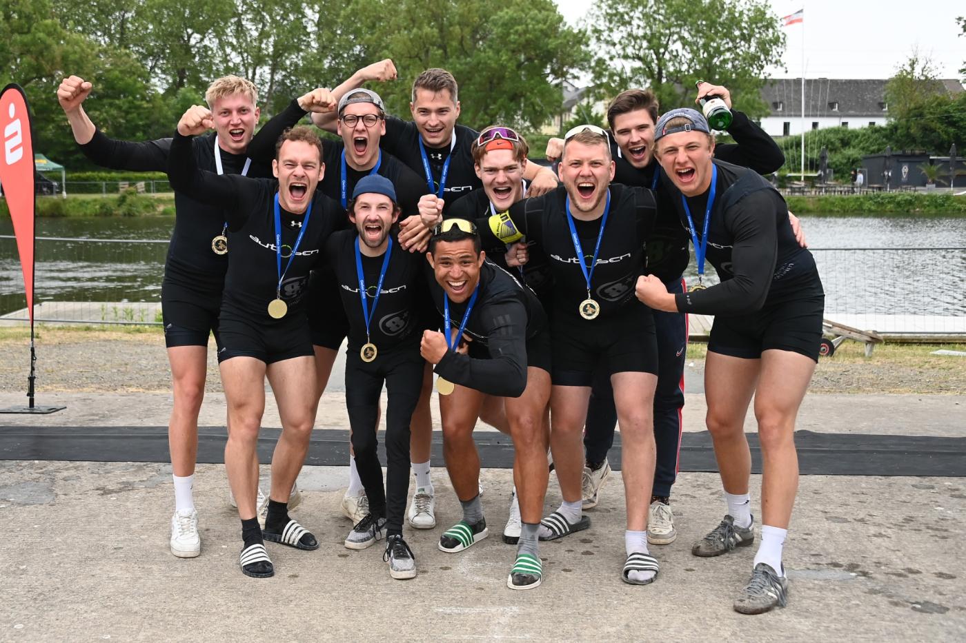 Im großen Finale kam es zur Wiederauflage des Zweikampfs aus dem letzten Jahr: der Ligachampion Autosen Sprintteam Mülheim auf Bahn 1 bekam es mit den Männern vom Wasserstraßenkreuz, dem Melitta Achter Minden – „Team Black“ zu tun. Unter den Anfeuerungen aller Zuschauer und Fans an der Strecke und den Kommandos der beiden Steuerleute ruderten beide Teams mit hoher Schlagzahl und sauberer Technik über die Lahn. Auf Streckenhälfte hatte Mülheim den Bugball nur knapp vorne als Schlagmann Vincent Schmitz im Mindener Boot die Schlagzahl nochmal erhöhte. Im Ziel reichte es dann mit 0,24 Sekunden für das Sprintteam aus Mülheim.