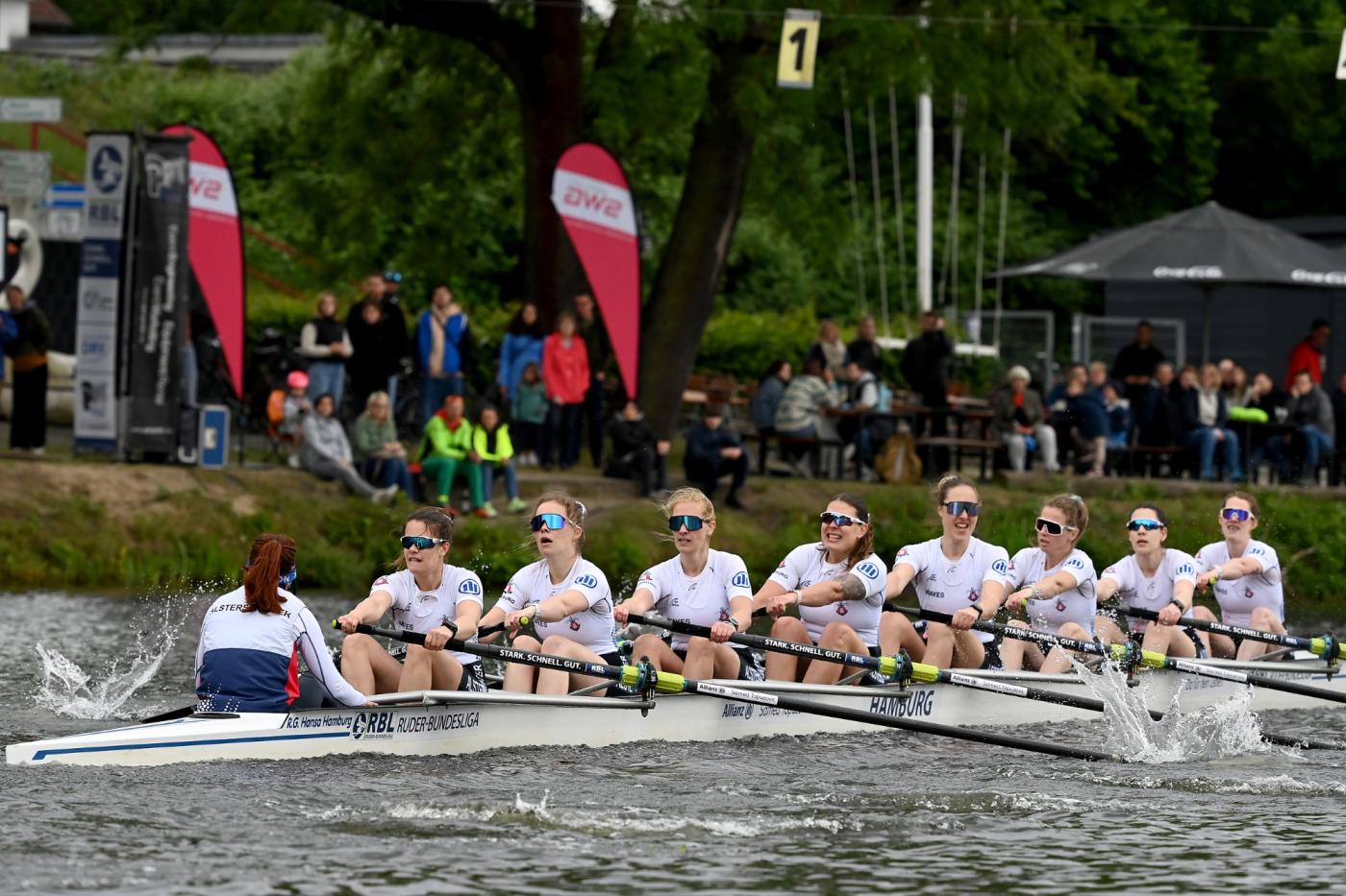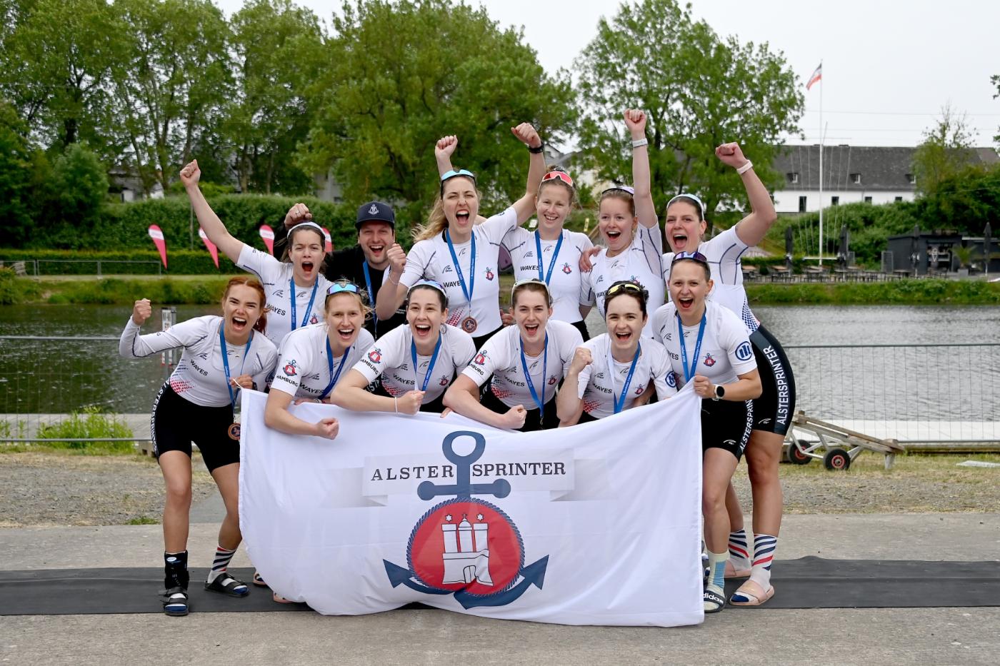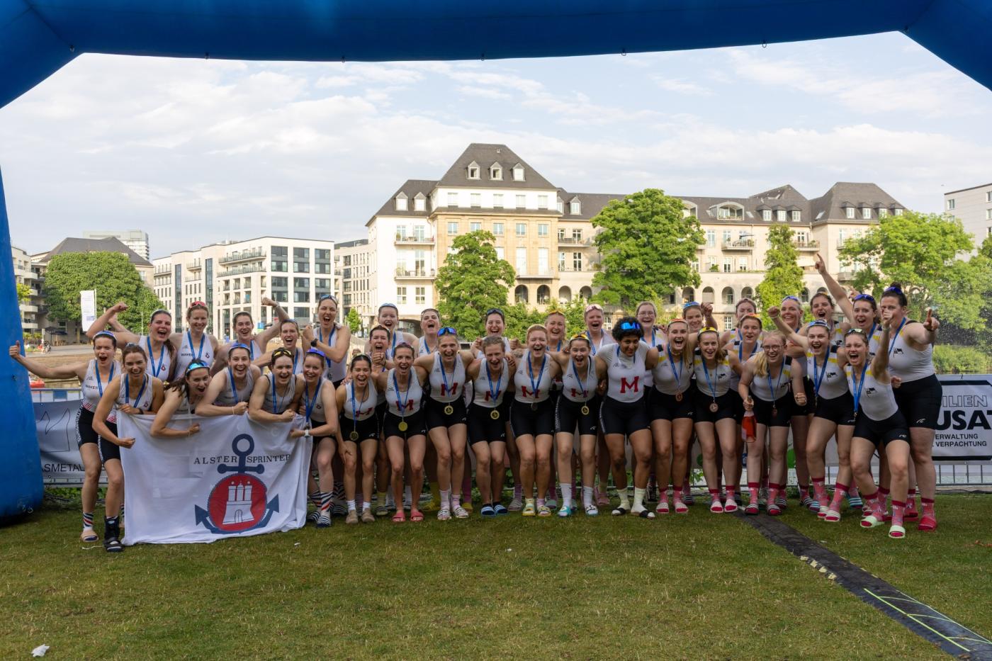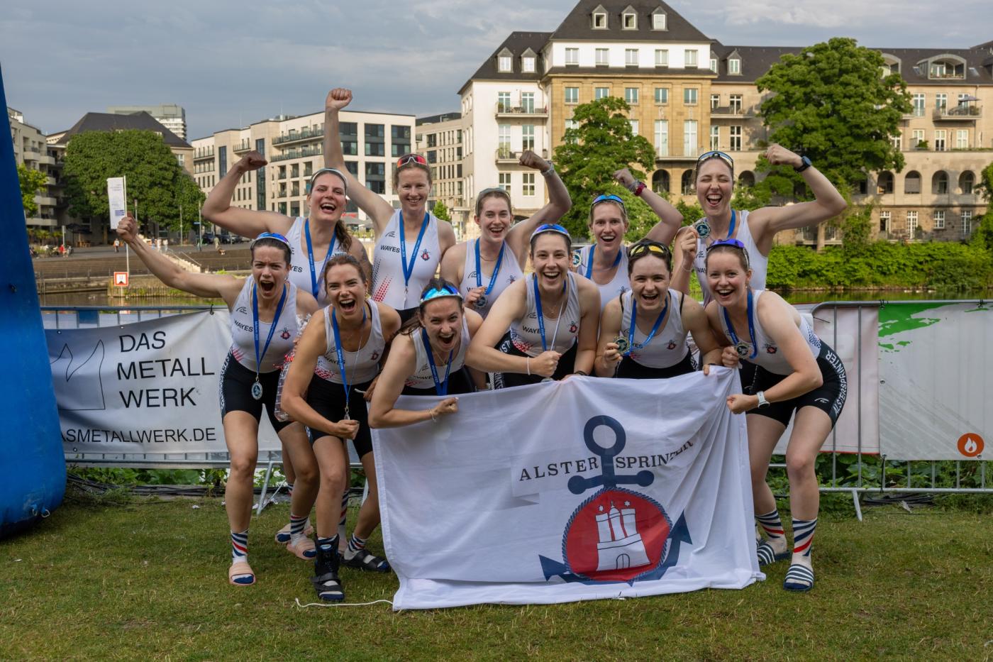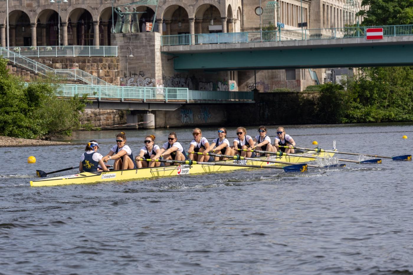 Bei den Frauenteams überzeugten die vier bestplatzierten Teams aus dem Zeitfahren. Eng wurde es im Viertelfinale als der SachsenEnergie Achter den Havelqueens alles abverlangte und im Ziel nur knapp unterlegen war. Und im Halbfinale lieferten sich der Ruhr-Achter Essen-Kettwig und die Alstersprinterinnen lange einen Bord-an-Bord-Kampf, in dem die Damen von der Alster nur knapp unterlagen.