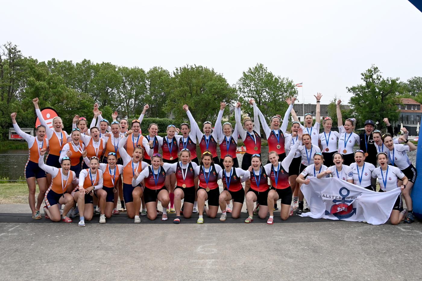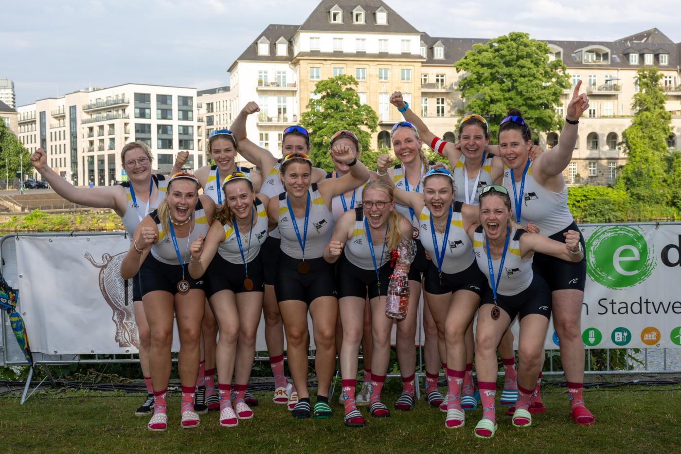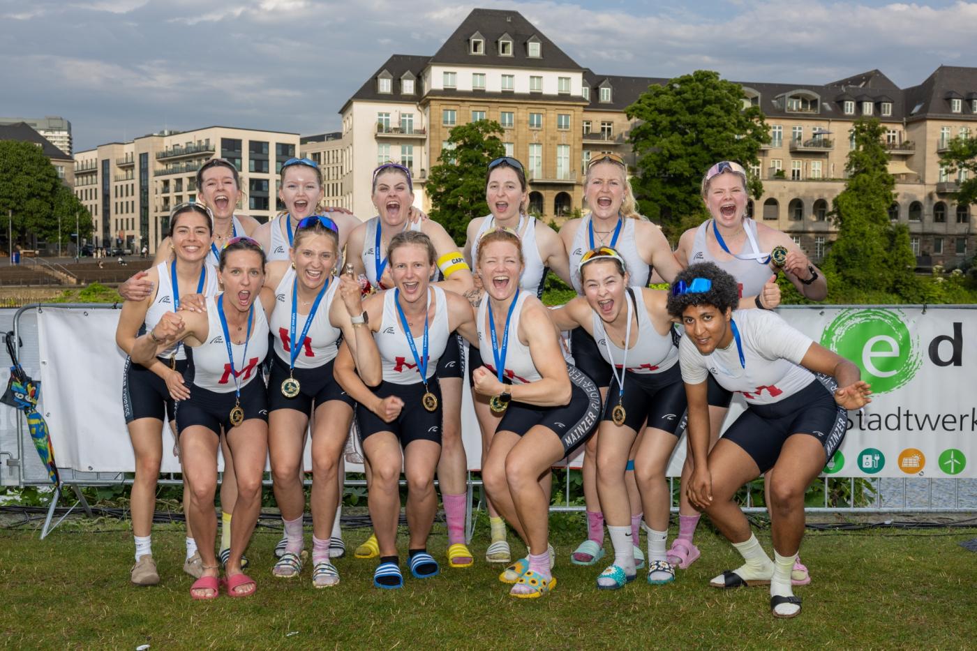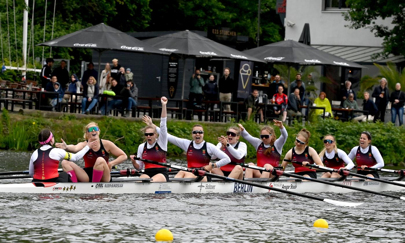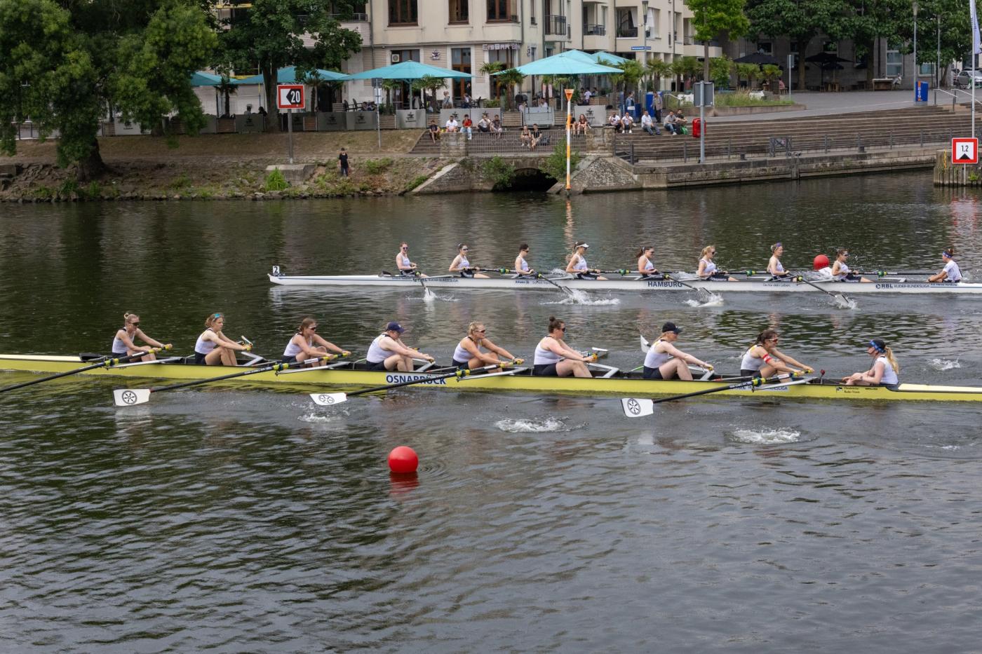 Bei den Frauenteams überzeugten die vier bestplatzierten Teams aus dem Zeitfahren. Eng wurde es im Viertelfinale als der SachsenEnergie Achter den Havelqueens alles abverlangte und im Ziel nur knapp unterlegen war. Und im Halbfinale lieferten sich der Ruhr-Achter Essen-Kettwig und die Alstersprinterinnen lange einen Bord-an-Bord-Kampf, in dem die Damen von der Alster nur knapp unterlagen.